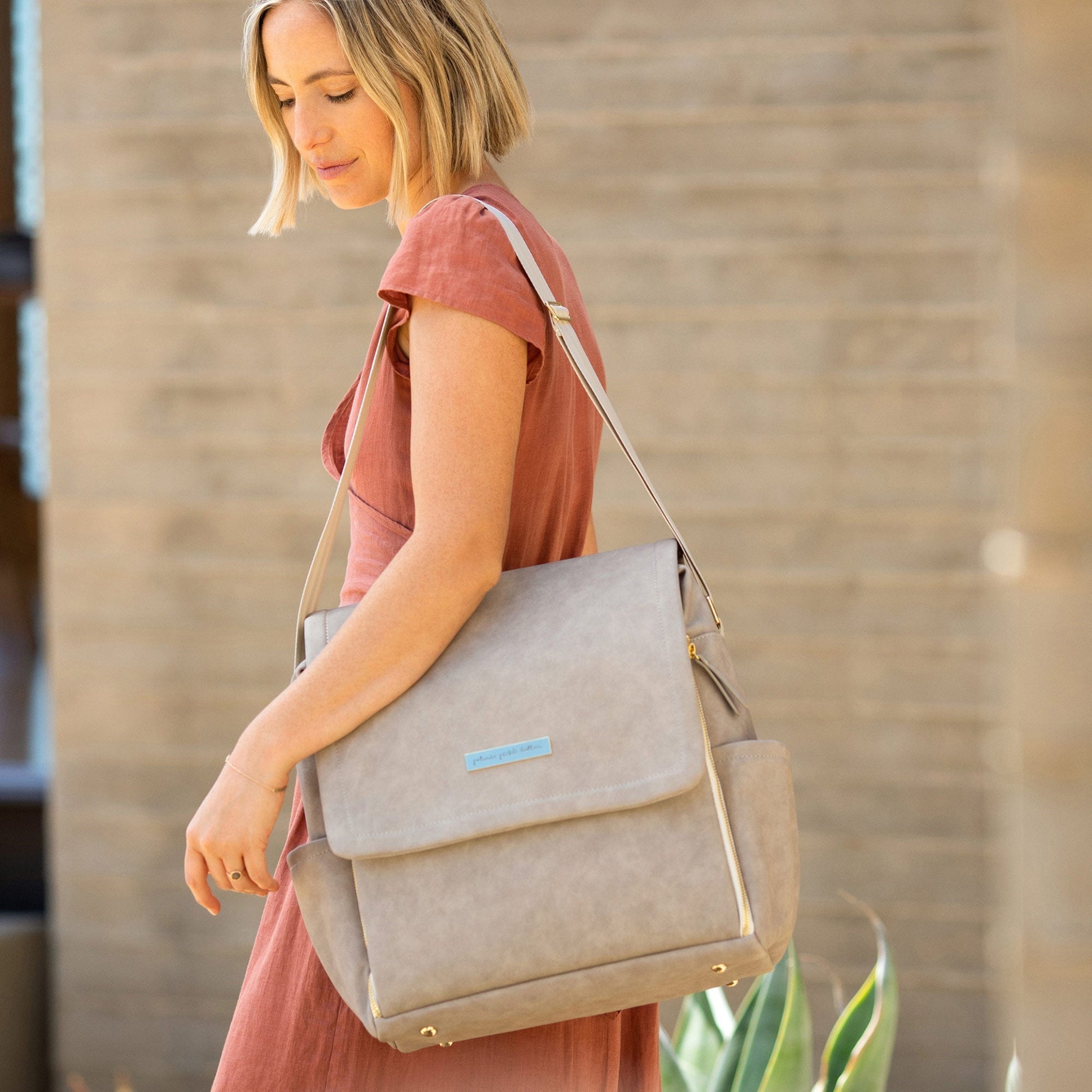 Petunia Pickle Bottom's Leatherette Collection’s matte faux leather combines a soft, supple hand with the durable performance every parent expects in a diaper bag. Outfitted in this luxe leatherette, the lightweight Boxy Backpack features a versatile design and intuitive function. This top-selling diaper bag, designed with the modern mom in mind, has numerous features, including a clever built-in changing station, internal organization pockets, multiple carrying options (backpack and cross-body / shoulder), and a new rear ‘mommy’ pocket that ensures that sunglasses, cell phones or any must have is easily within reach!