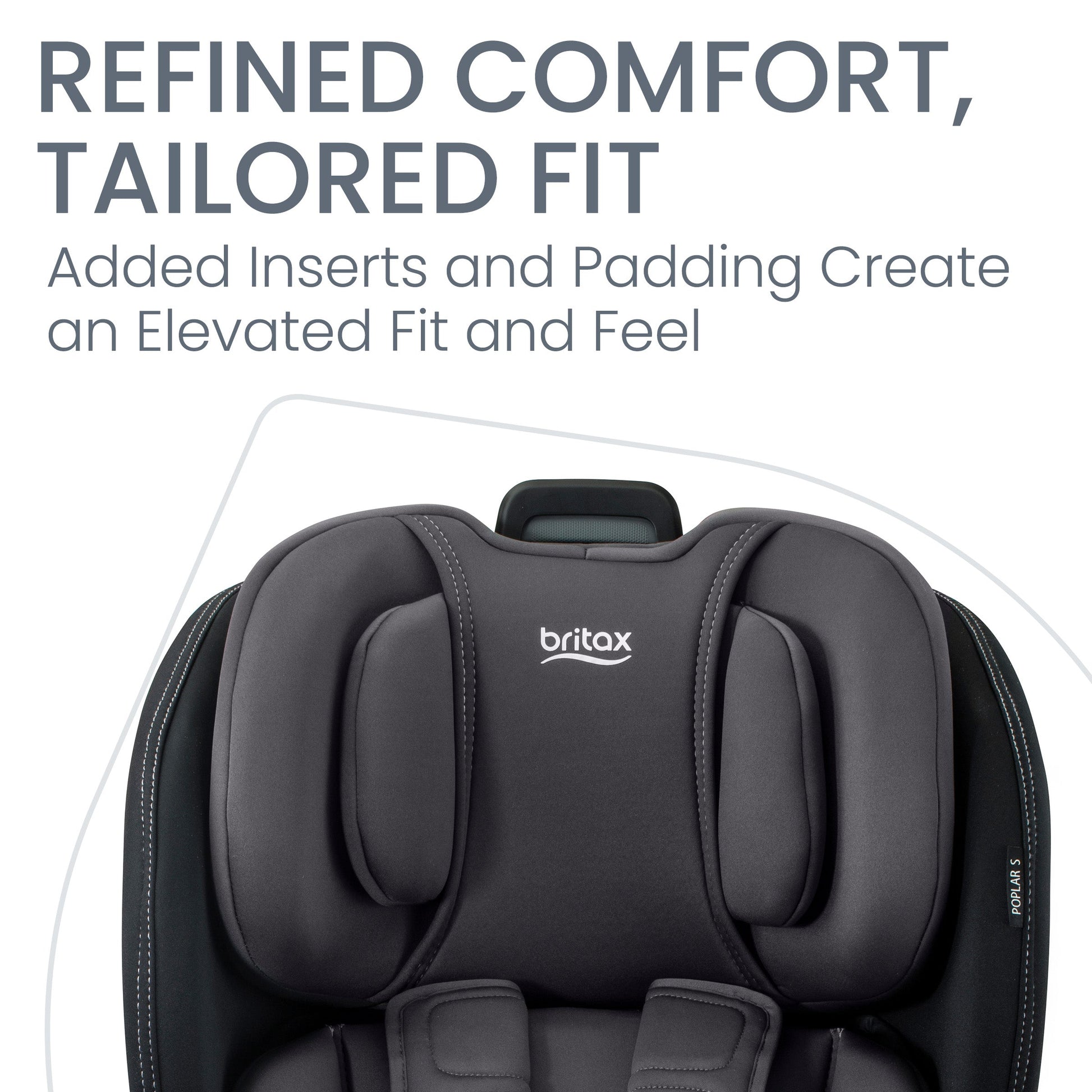 - The Poplar™ S fits up to 40 lbs./18.1 kg when installed rear-facing while easily switching to forward-facing as your child grows