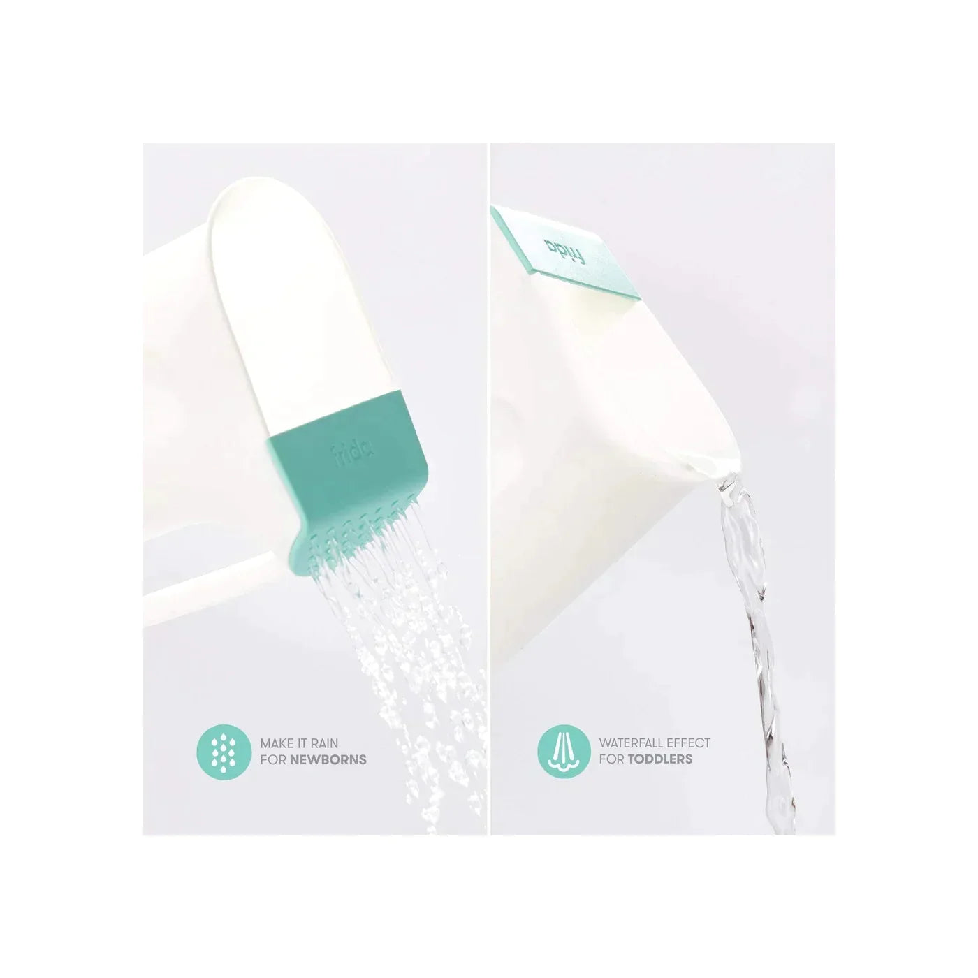 Get two ways to pour with the Control The Flow Rinser - a gentle rain shower for newborns, or a waterfall for toddlers, keeping water out of their eyes + ears for a quick, painless soap and shampoo rinse.
