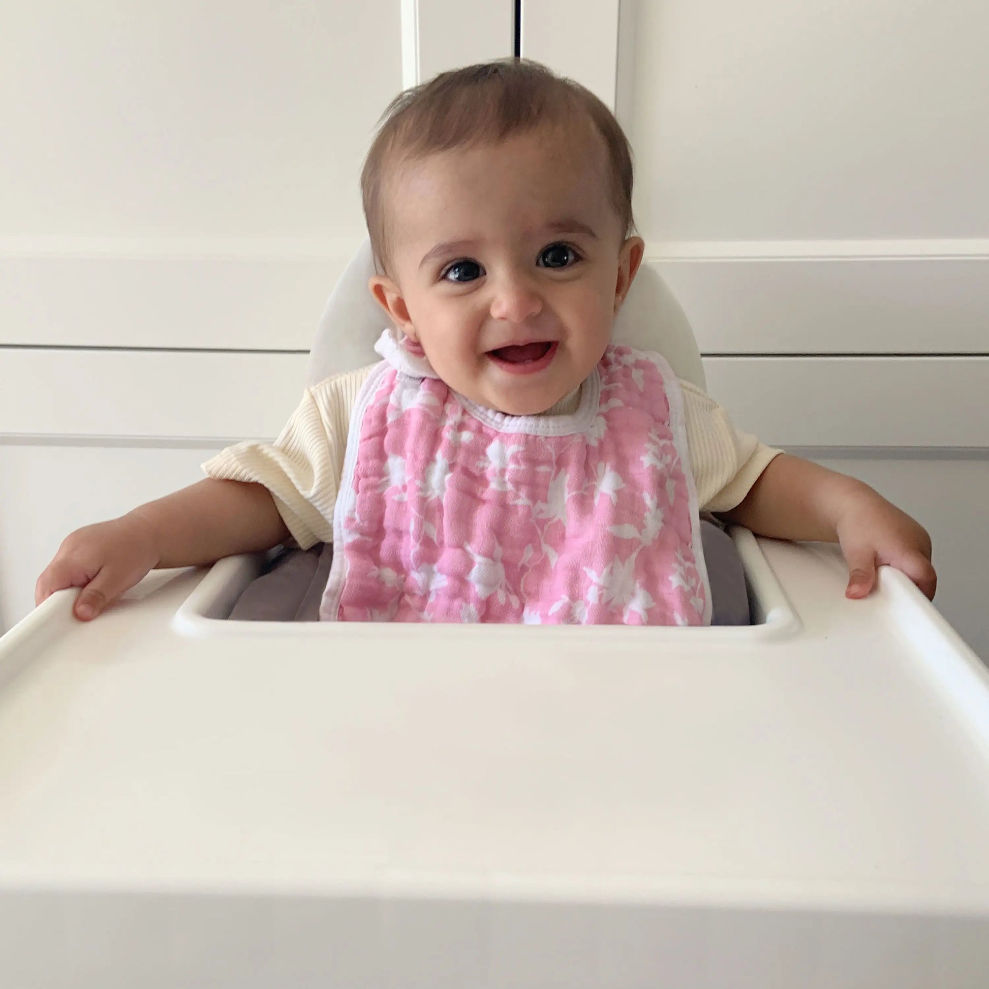 aden and anais' snap bibs are made with 3 layers of highly absorbent muslin, 25% more fabric, and a higher thread count for an extra luxurious finish.