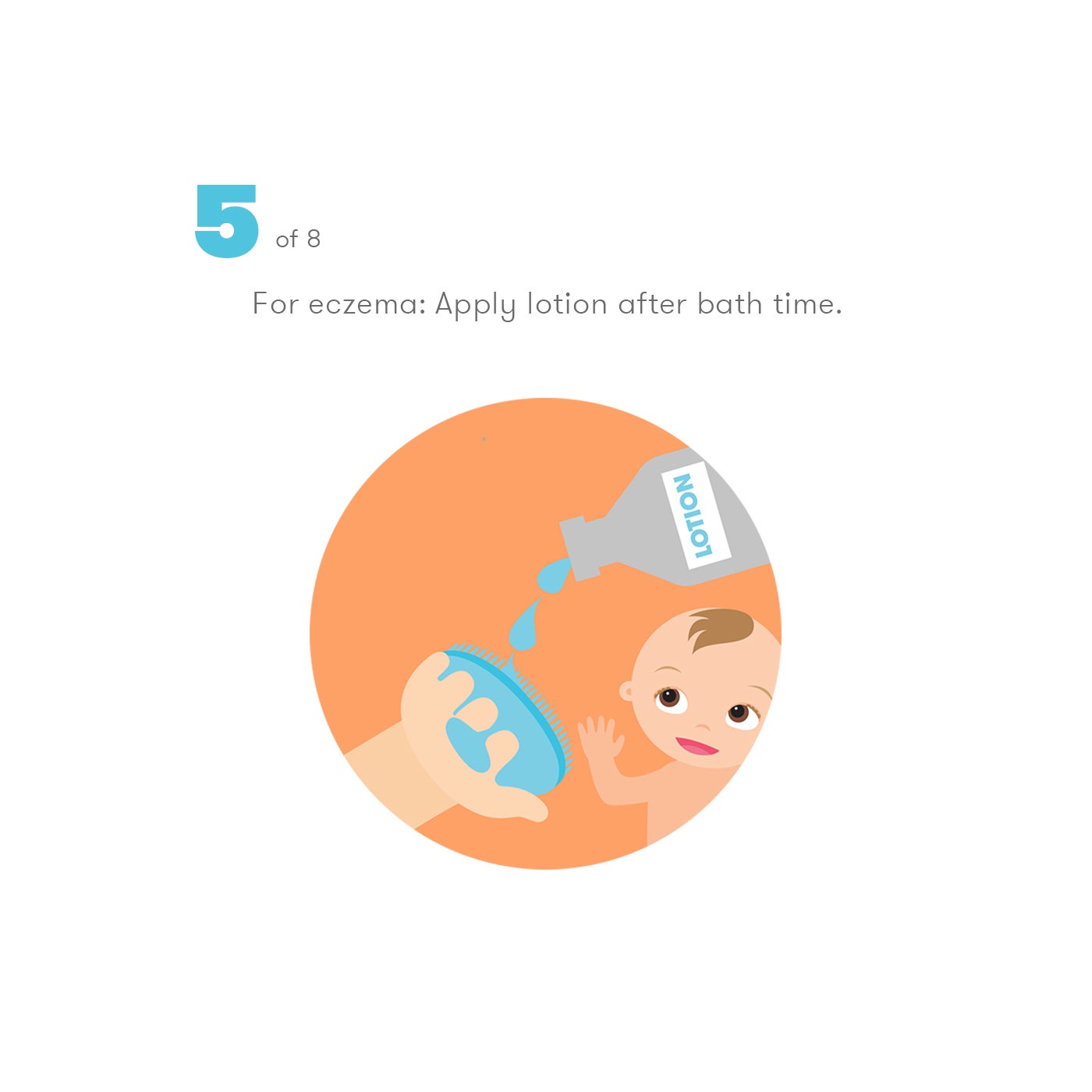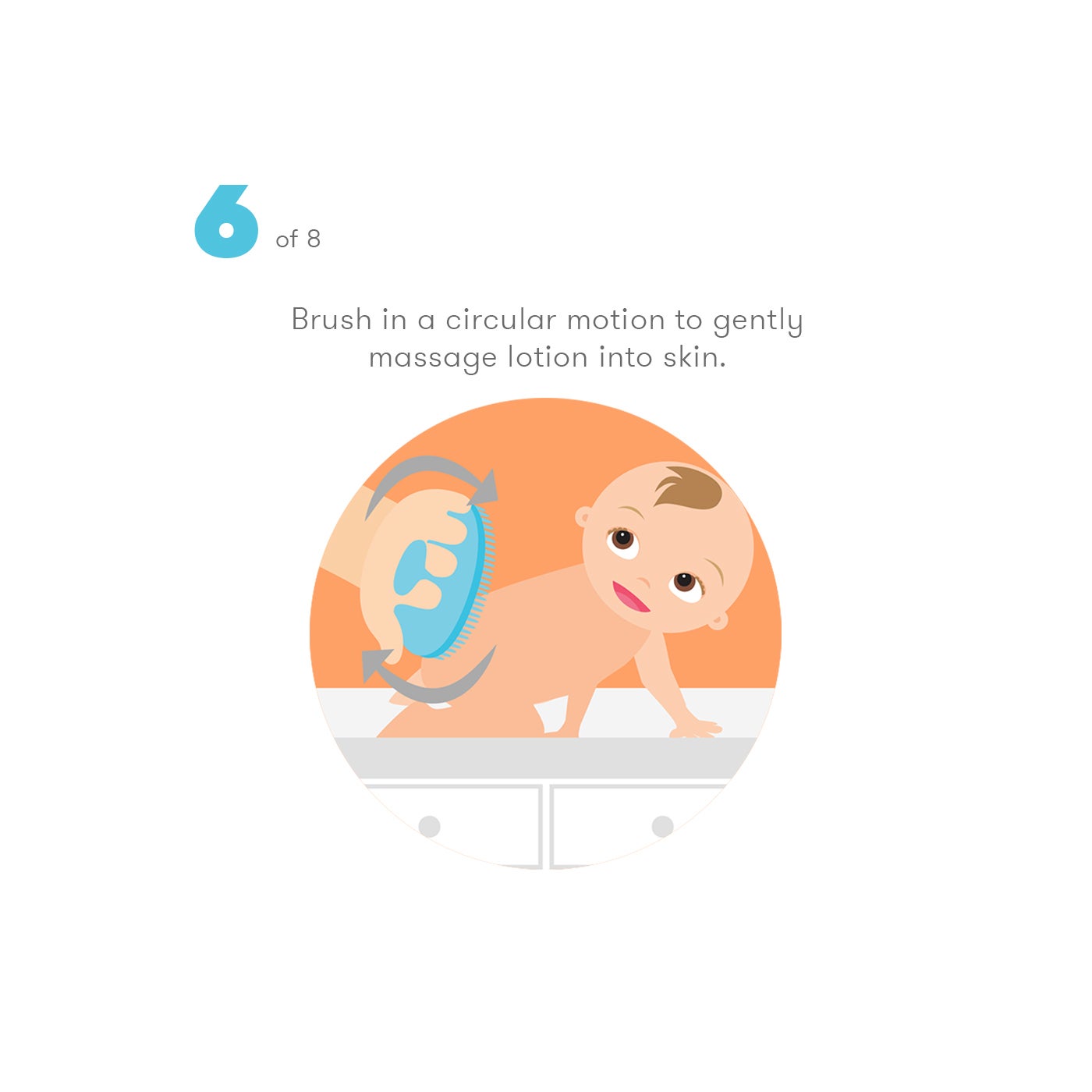 For eczema: Use brush in a circular motion to gently massage lotion into skin.