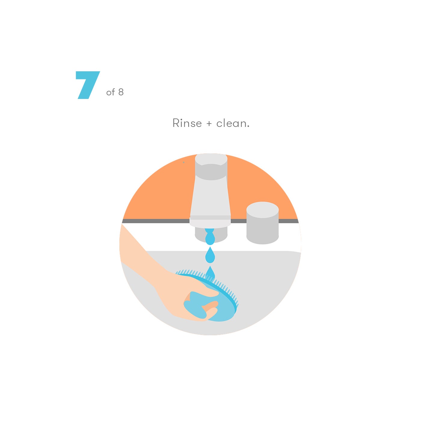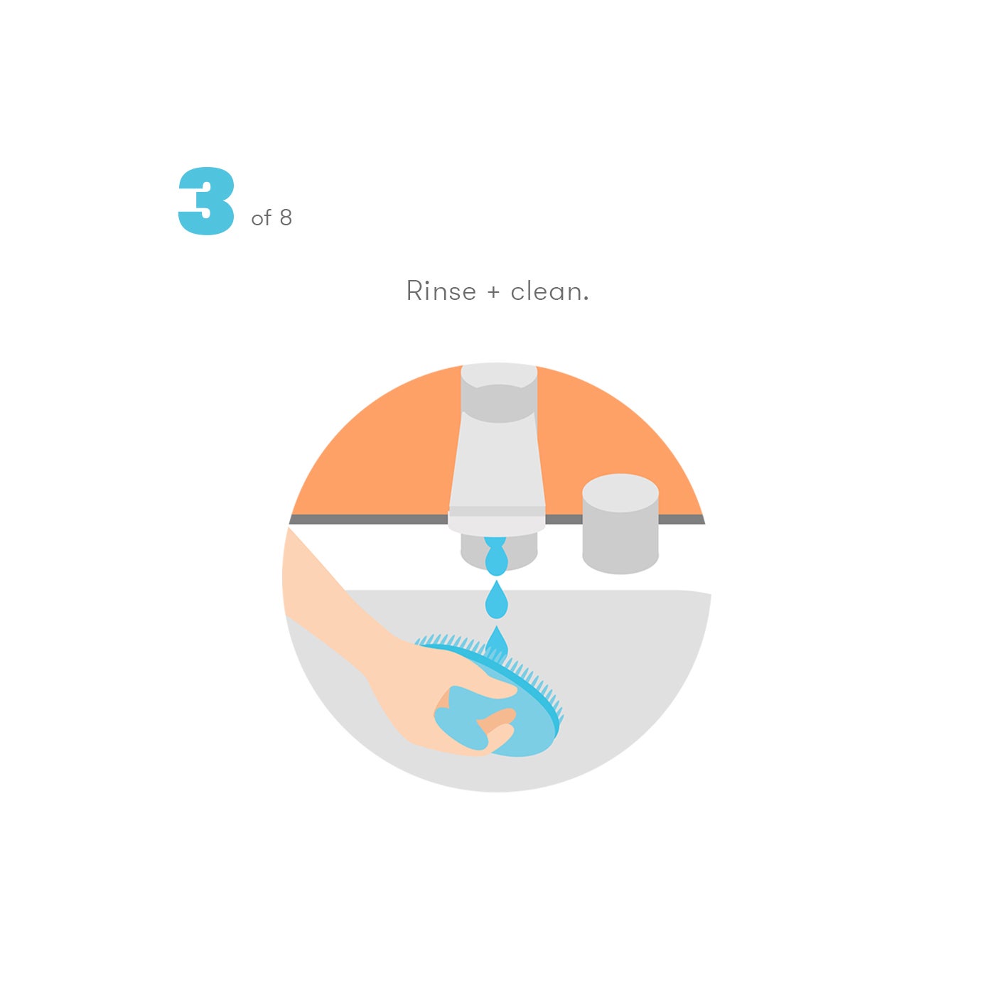 • Made with 100% antibacterial silicone • No dry time. Sayonara smelly washcloth! • Built-in baby massage