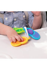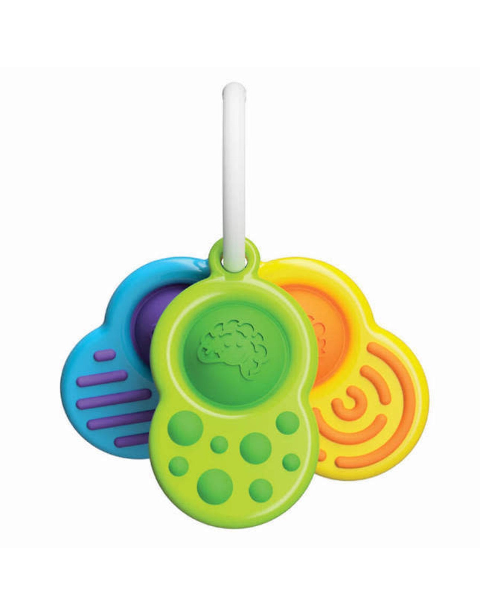 Each Clutch features a dimpl bubble on one end and squishy silicone textures on the other. There's green with bumps, yellow with circles, blue with lines... so much for the fingers to explore!