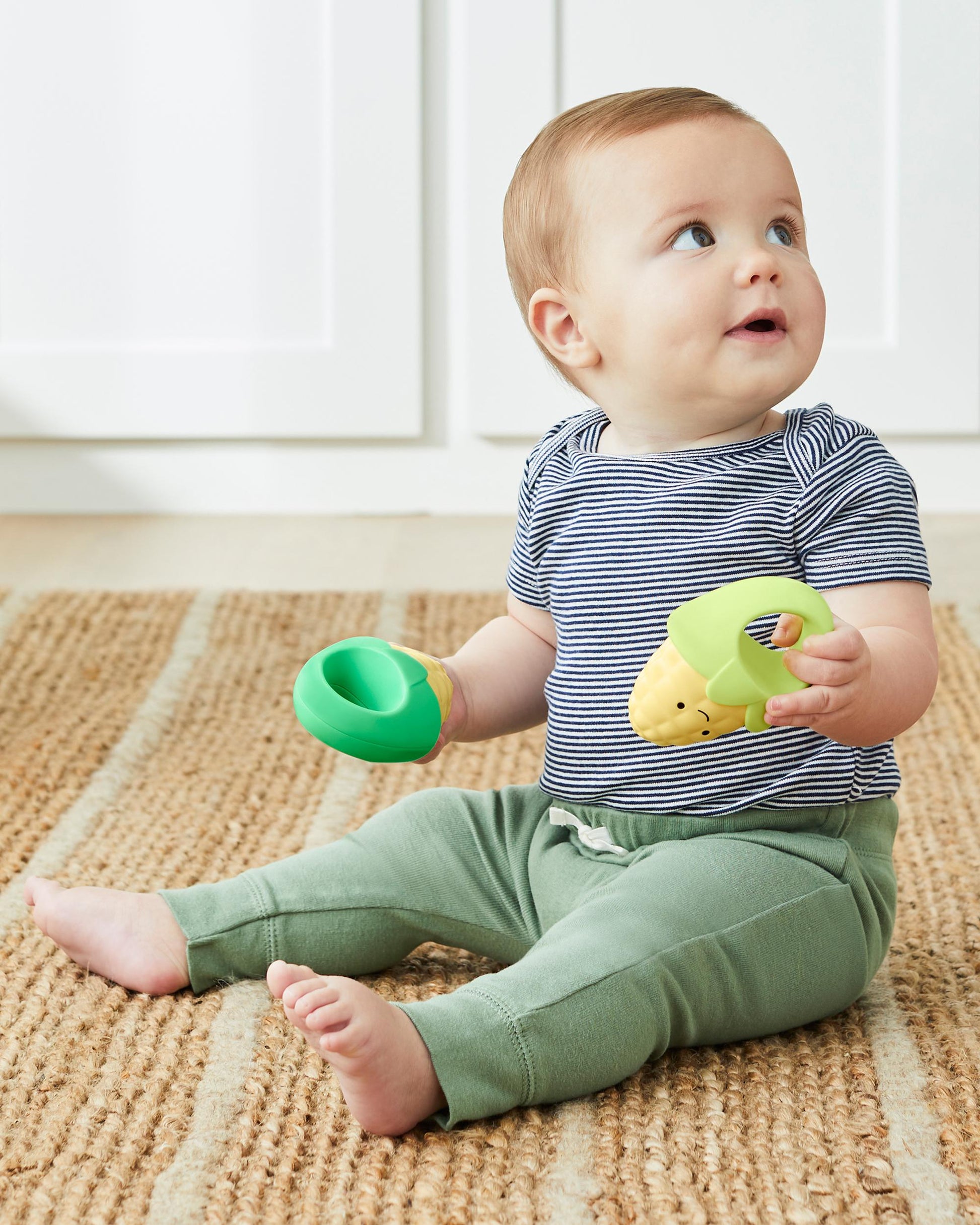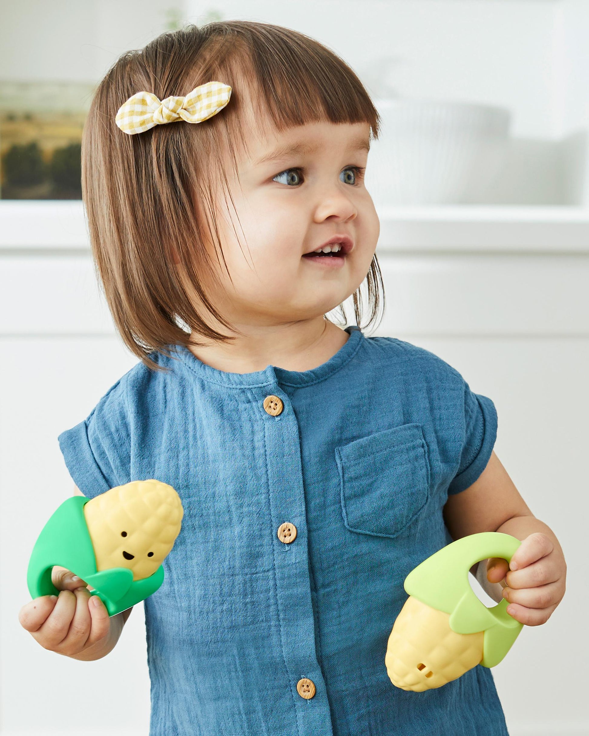 Our cute corn shakers set features easy-grab shapes and two different maracas-meet-rattle sounds for extra fun!