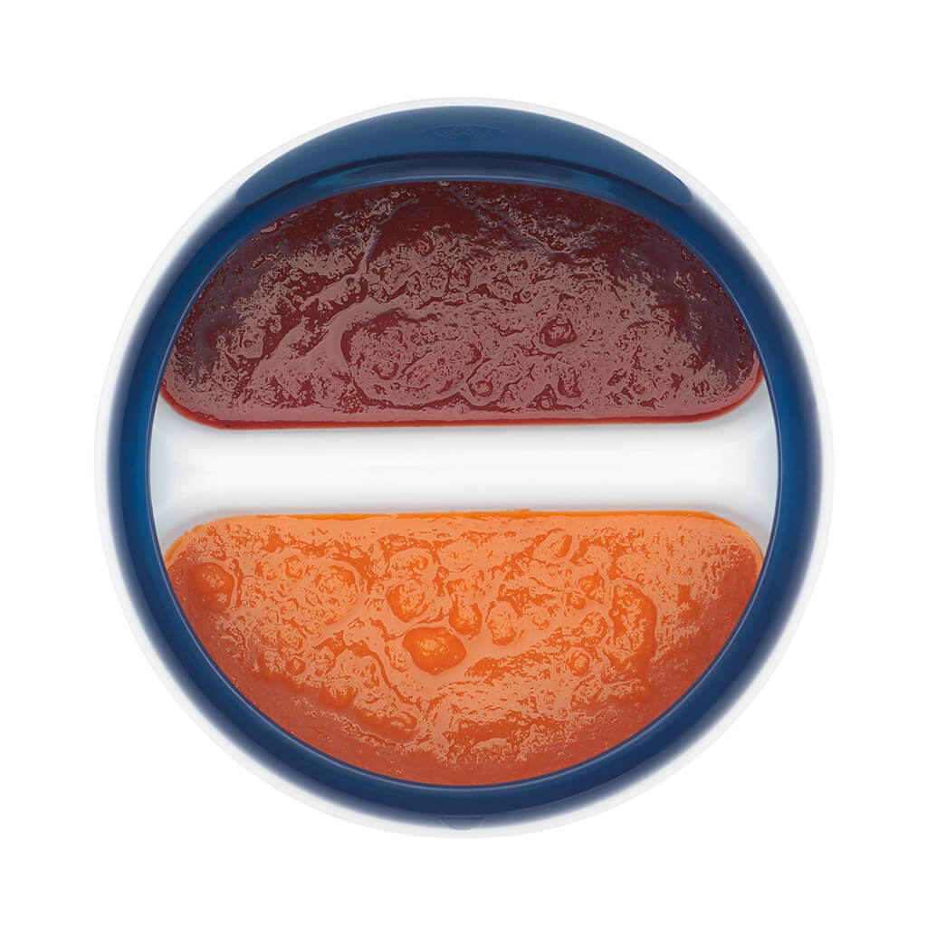 The Oxo Tot Divided Feeding Dish frees you to give your little one two foods in one contoured, comfortable to hold Dish, with its non slip base and grip.
