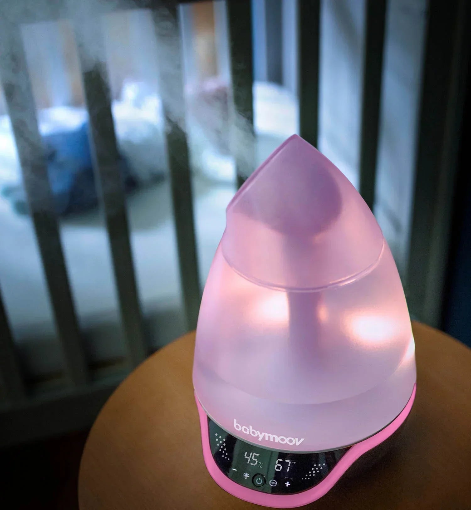 The multi-coloured night light is also controlled via the screen. This practical humidifier also features a diffuser for essential oil.