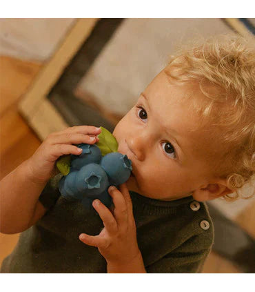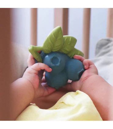 Jerry the Blueberry is a chewable baby toy for teething, bath time and sensory play. Little ones love its round & squishy shape to grasp and soothe teething gums. Its design with a hole in the middle makes it perfect to hang from a strap & take it everywhere you go!