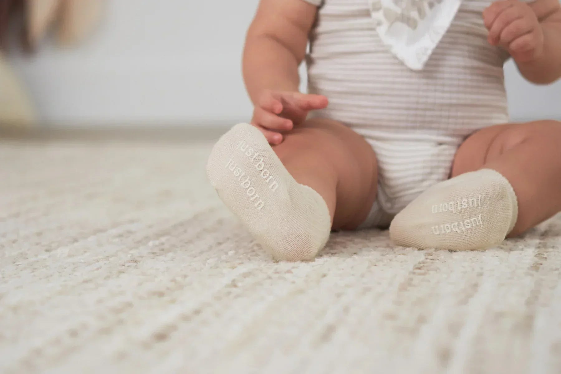 Socks feature skid resistant soles and a comfort fit to keep them gently and securely in place without leaving marks .