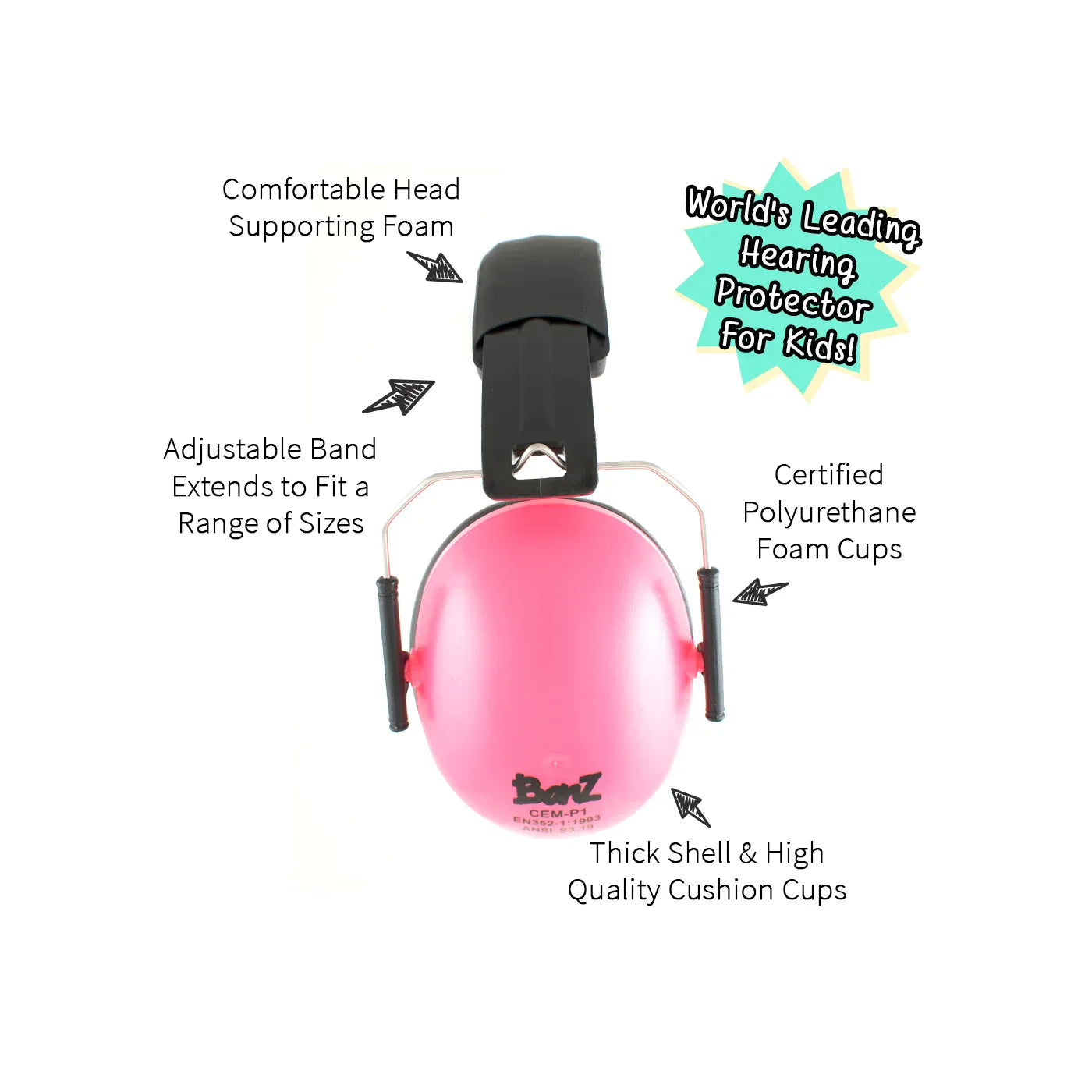 Planning on taking your kids to loud sporting events, concerts, or on airplane rides? Protect your kids' ears with BanZ earmuffs.