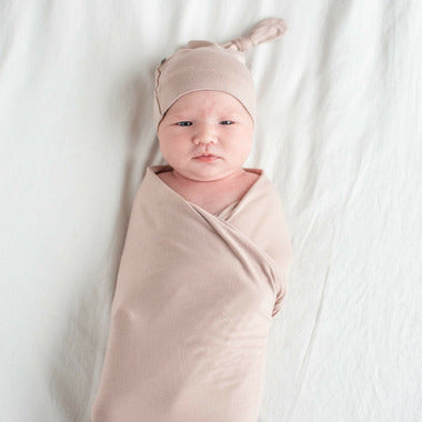 These knotted caps are made from ultra-soft bamboo rayon. The silky fabric is perfect for delicate skin, while the stretchy material accommodates a range of head circumferences. Available in a rainbow of modern colors, these caps are the finishing touch for any Kyte BABY outfit. For preemie or smaller babies, roll the edges of the cap up for a snug fit.