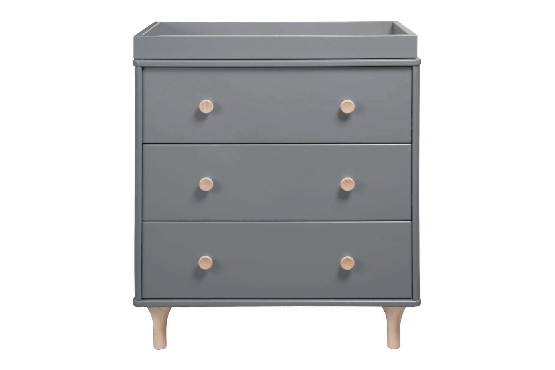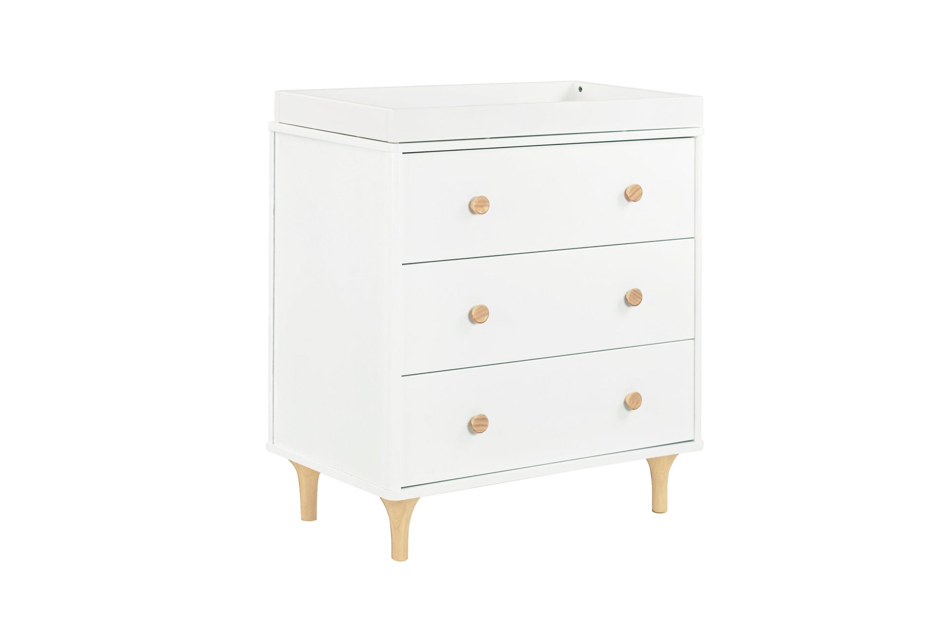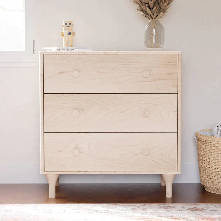 The delightful Lolly 3-drawer dresser is a modern nursery essential complementing the Lolly 3-in-1 Convertible Crib with natural curves and contrasting features.