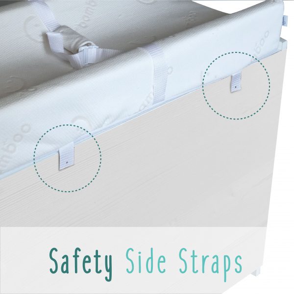 The contoured walls and quick release safety belt keep baby securely in place, while the non-skid base resists the pad from sliding on dressers and change tables.