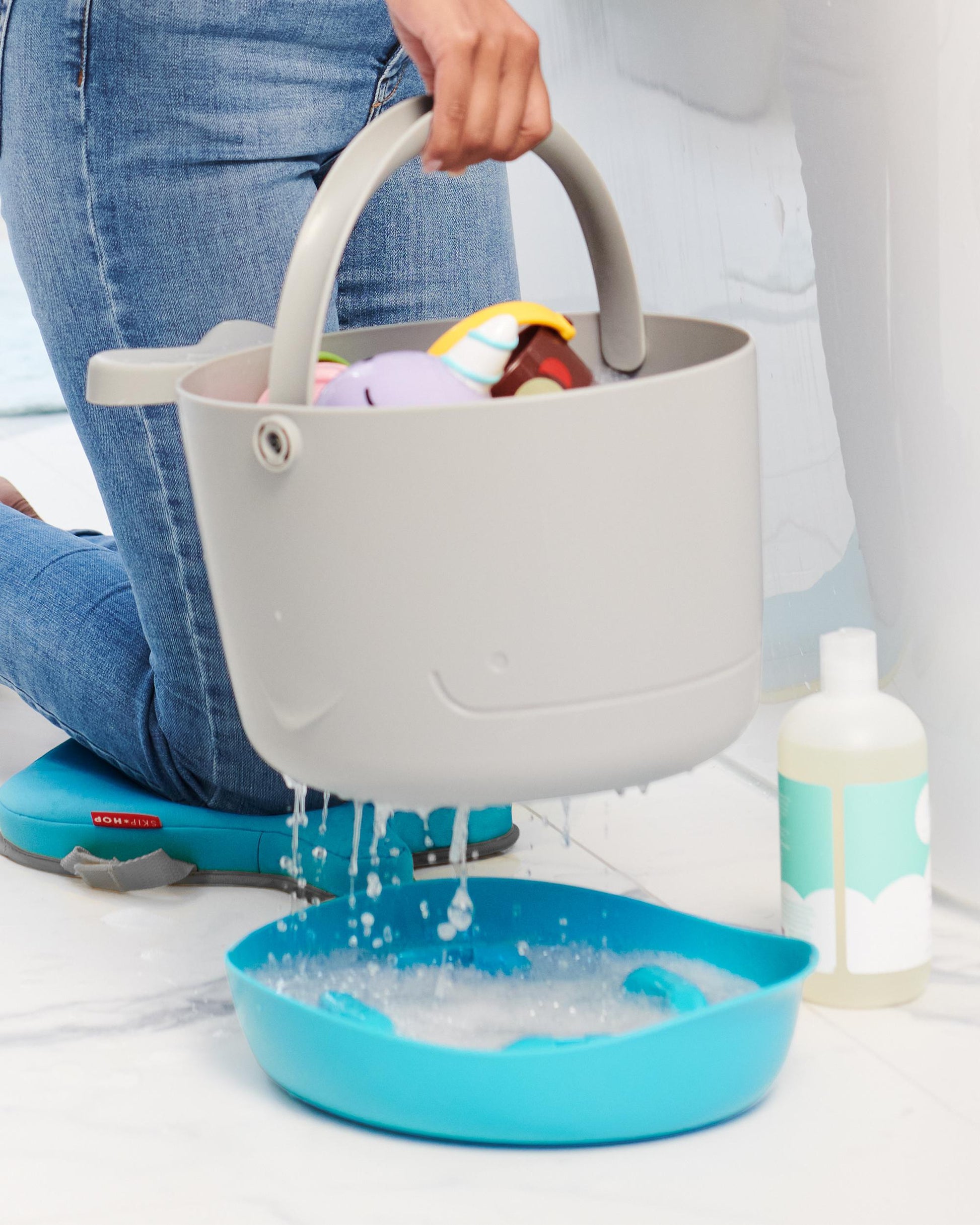 Keep all your little one's favorite bath toys organized, dry and within reach with our generously sized bath toy bucket.