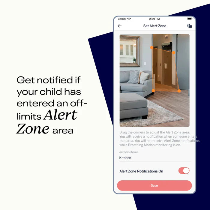 - Alert Zone feature (exclusive to the Flex Stand) allows you to detect whether your child has entered an off-limits area, triggering an alert to your device*