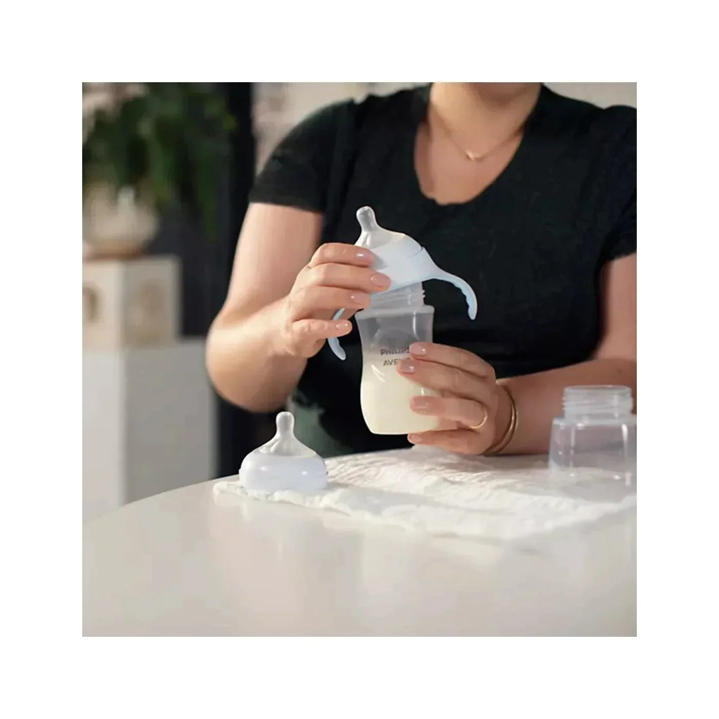This Philips Avent My Natural Trainer cup makes it easier for your child to transition from bottles to sippy cups. Ideal for babies 4 months and up, this cup comes with both soft, a Natural Response nipple as well as a soft spout, allowing flexibility to move from bottle to cup whenever your child is ready to make the transition.