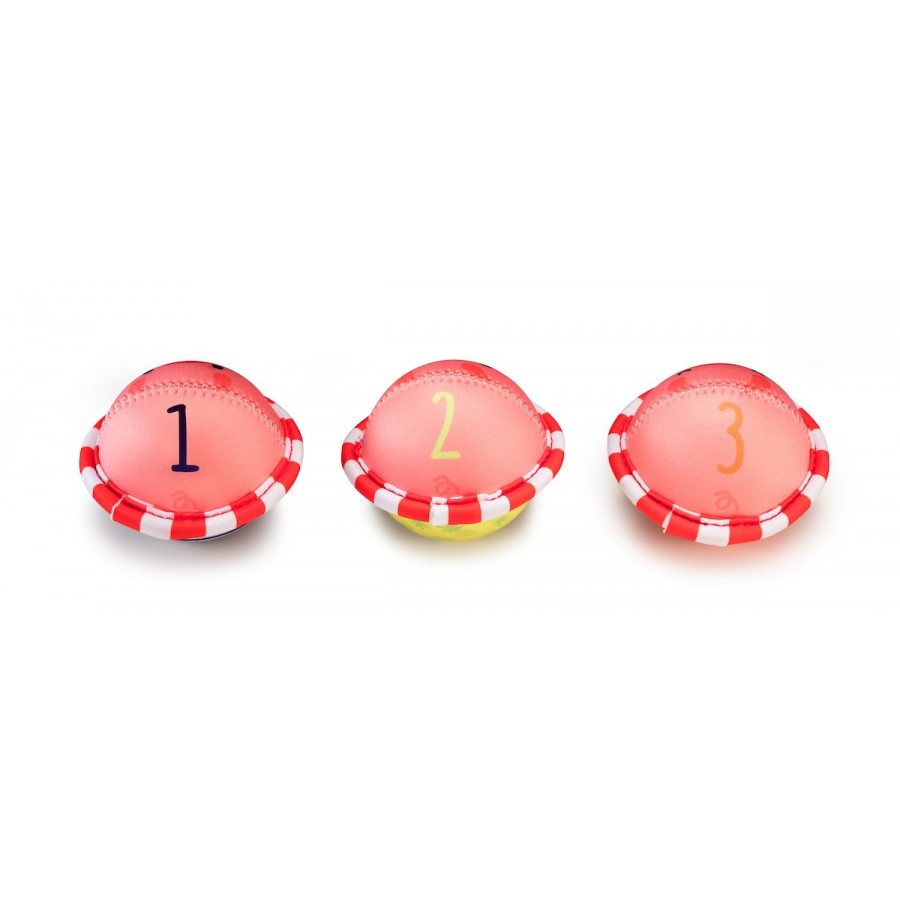 Nicolas the wolf makes the bath time of your little one a grand time for pleasure and learning. He is attached with suction cups on the bath wall and your little one can fish three little pigs out of the water and put them in Nicolas’s mouth. That stimulates his/her fine motor skills and improves hand-eye coordination. Getting used to water is child’s play with this toy and its endless variation possibilities.