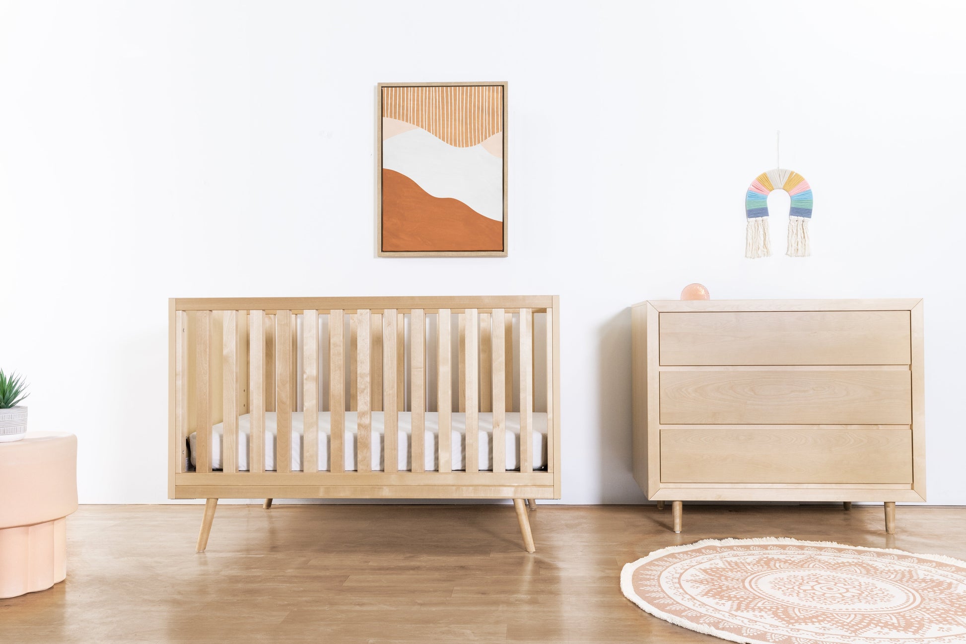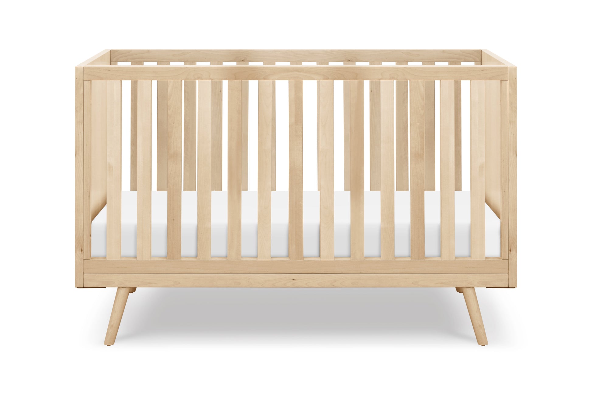 Inspired by the architectural lines and streamlined shapes of mid-century design, the Nifty Timber 3-in-1 Convertible Crib brings a retro-modern element to the nursery. The Nifty's flared legs and substantial wooden slats contribute to the crib's visual weight, made sleek by a simple matte finish. The Nifty Timber is simple to assemble and clean and converts to a toddler bed (conversion kit sold separately).