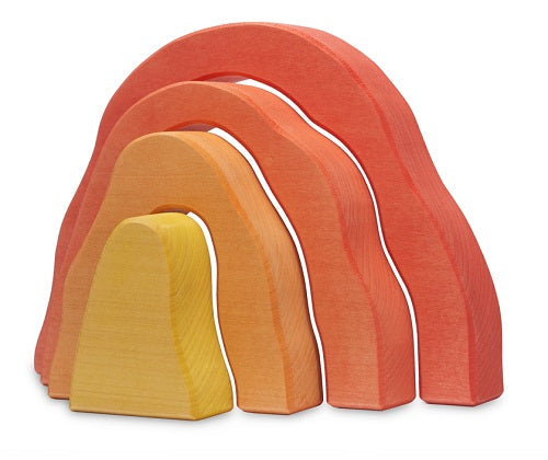Ocamora caves are made in Spain with linden wood harvested from Spain and France. The wood is labeled with FSC certificates and the caves are treated with ecological and environmentally friendly products. The oils that are used to finish the Ocamora toys are a mixture of flax oil, tung and some vegetable oils. The stains that are used to colour the wood are made from water dyes
