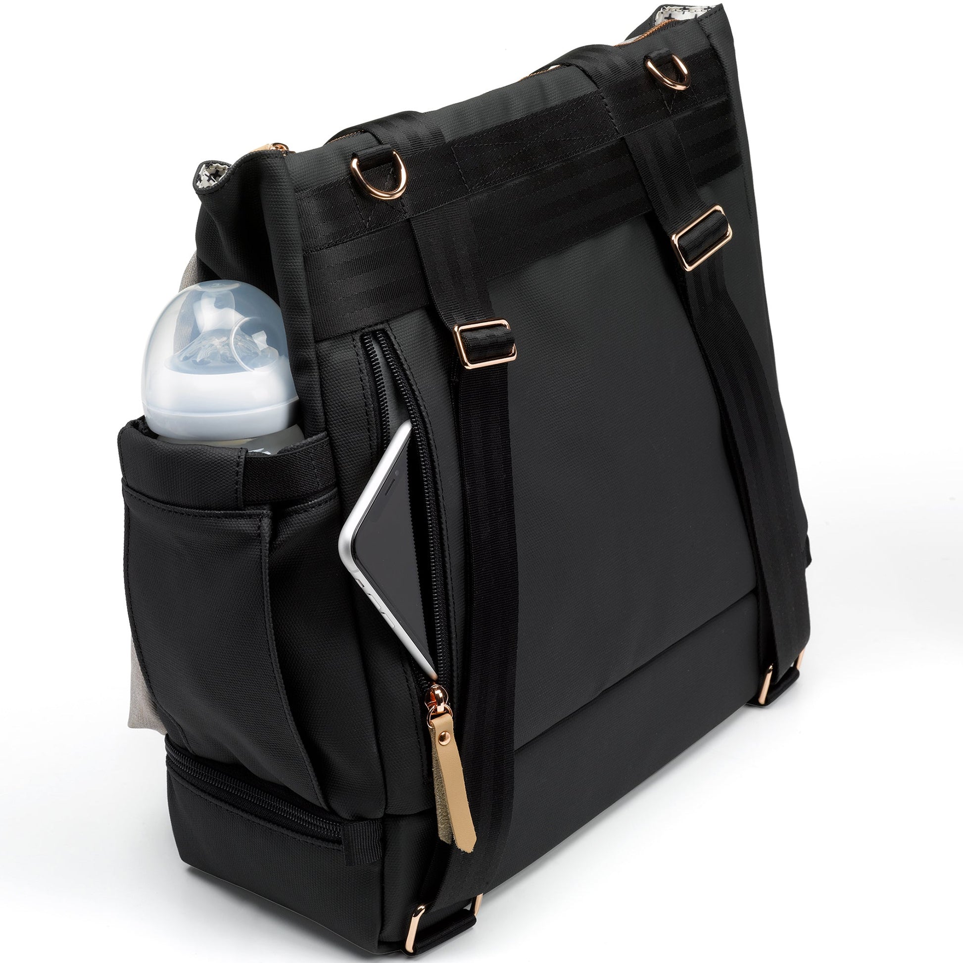 - Multiple carrying options for maximum versatility: As tote or backpack without adjusting straps, in hand with top grab handle, or on stroller with stroller clips (sold separately).