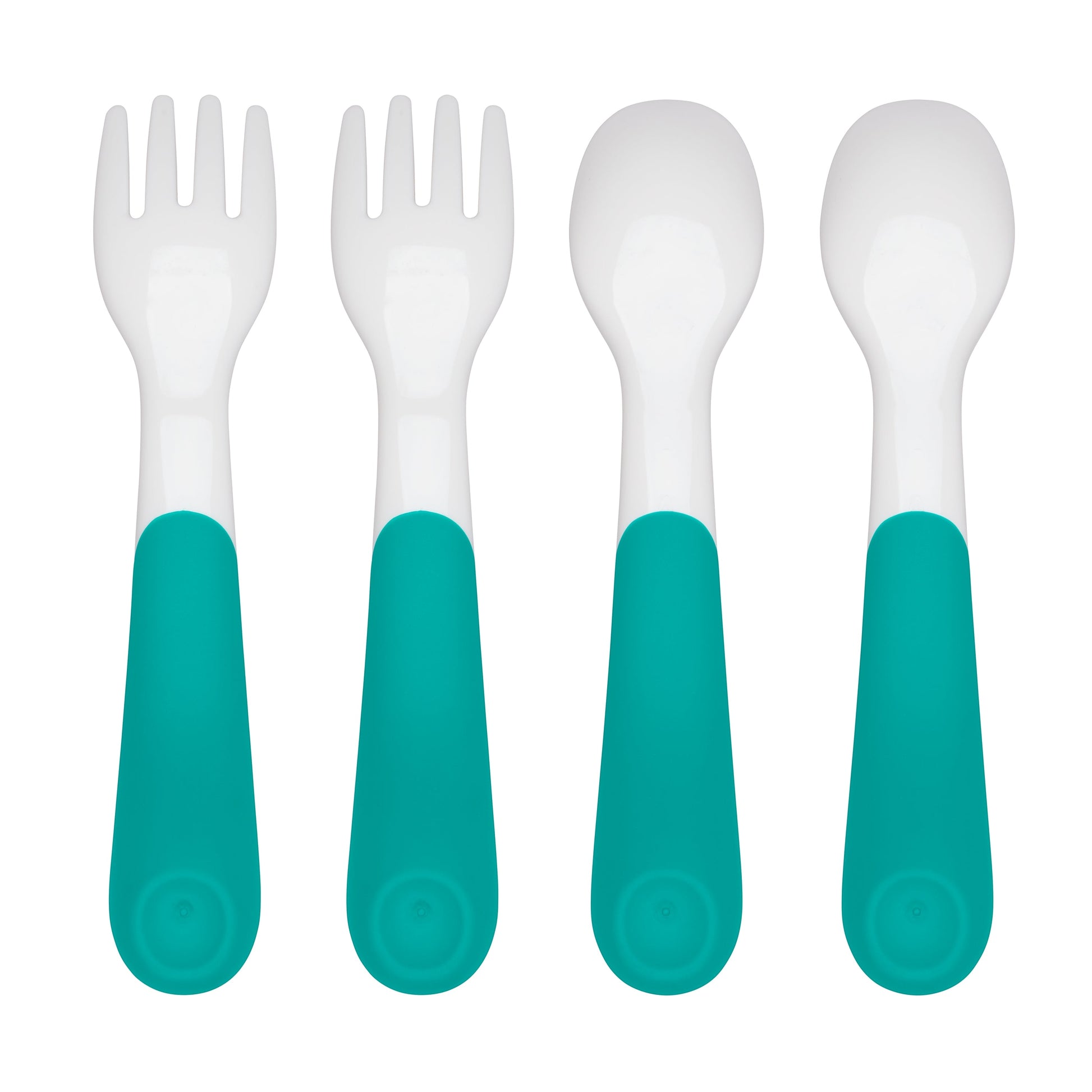 Perfect for toddlers who are just learning to feed themselves, the OXO Tot Fork and Spoon have rounded handles that are easy for little handes to grip. Rounded edges on spoon bowl and fork times provide safety and comfort in case of near misses.
