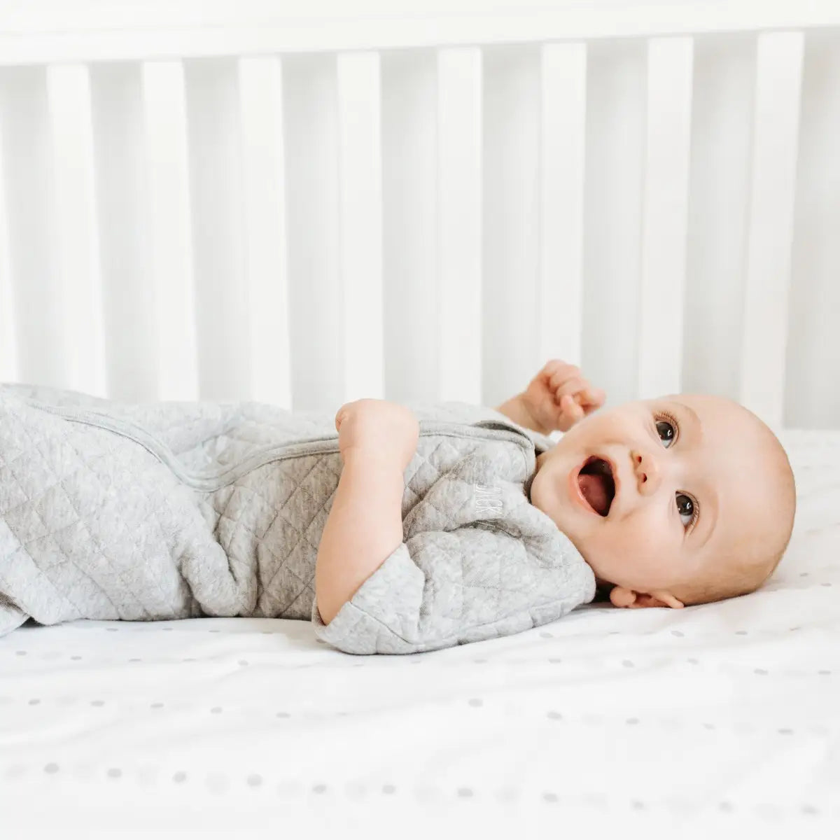 Lightly quilted with protective sleeves in 4-way stretch 100% cotton, it nestles baby like a soft blanket, without the risk of sleep-related dangers - so baby can sleep both comfortably and safely.