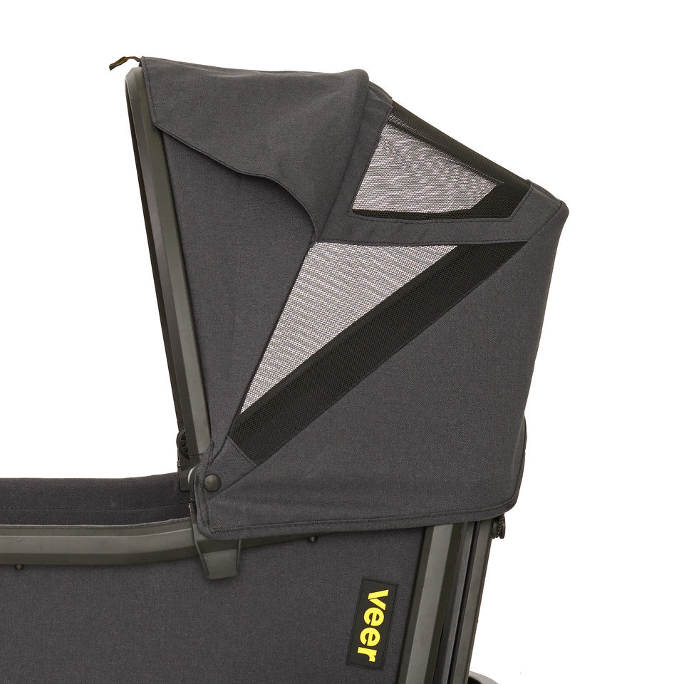 Add a Pop of color or completely coordinate with Veer’s custom color Retractable Canopy. It quickly and intuitively clips onto Cruiser’s frame and easily extends up and down. One or two can be attached, above either seat. A peak-a-boo window allows you to see your precious cargo and discreet, hidden magnets hold the window in the up position