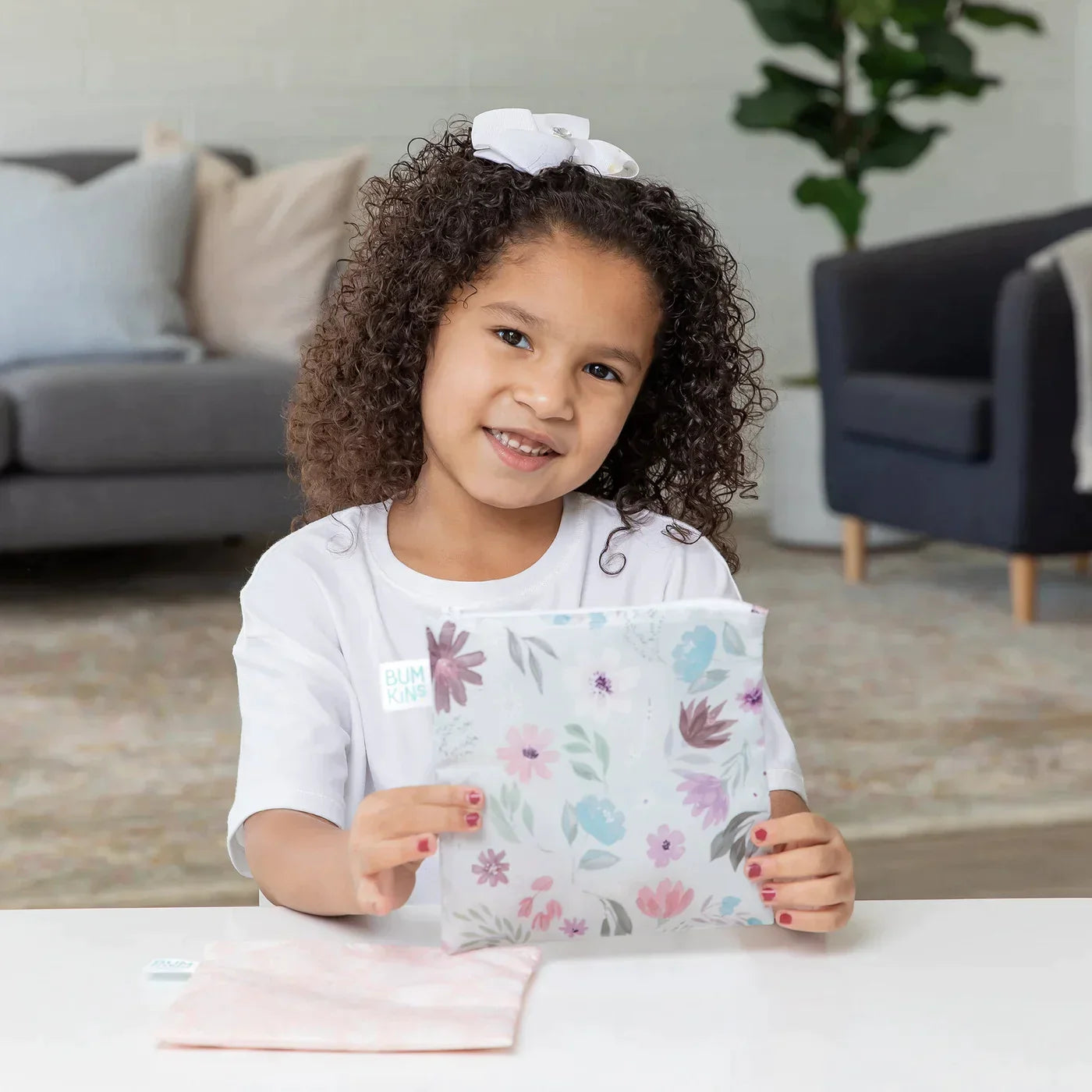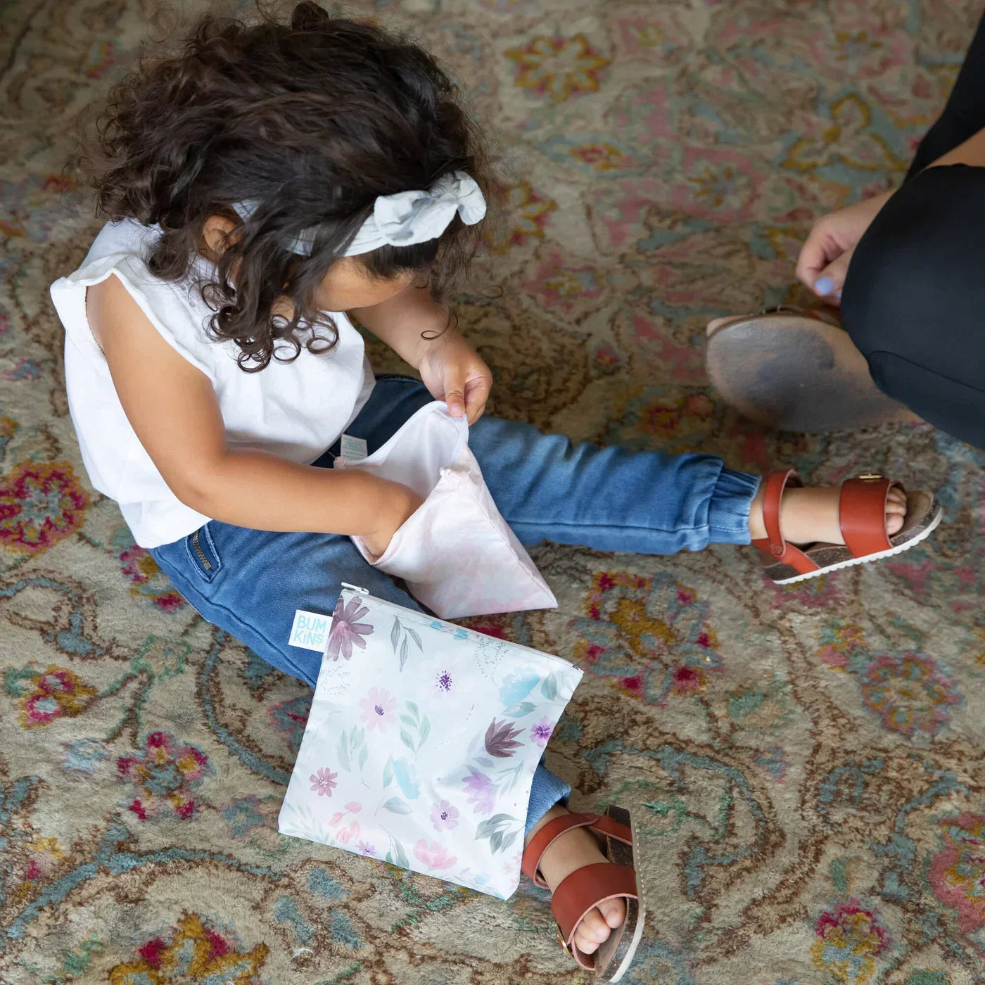 The better alternative to single-use plastic bags, Bumkins reusable Snack Bags are made from easy-wipe, stain-resistant fabric with a zipper closure. Great for food, organizing, storage, and travel.