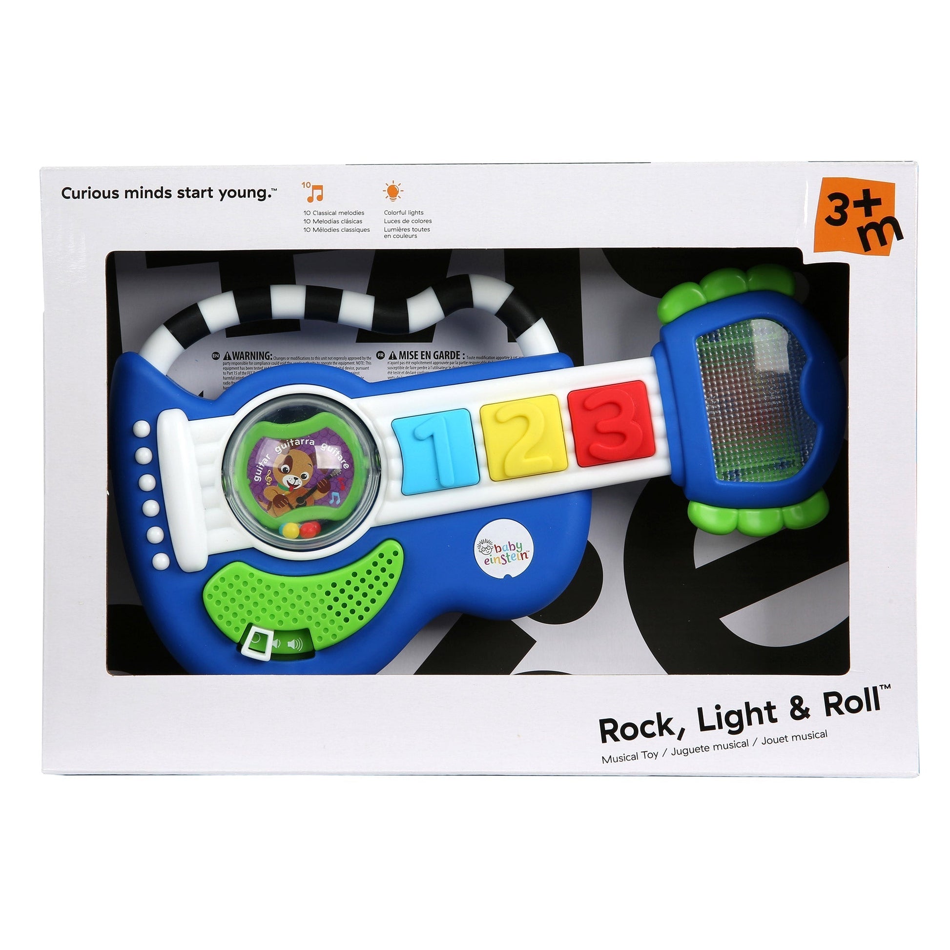 The Baby Einstein Rock, Light & Roll Guitar entertains baby with flashing lights and more.