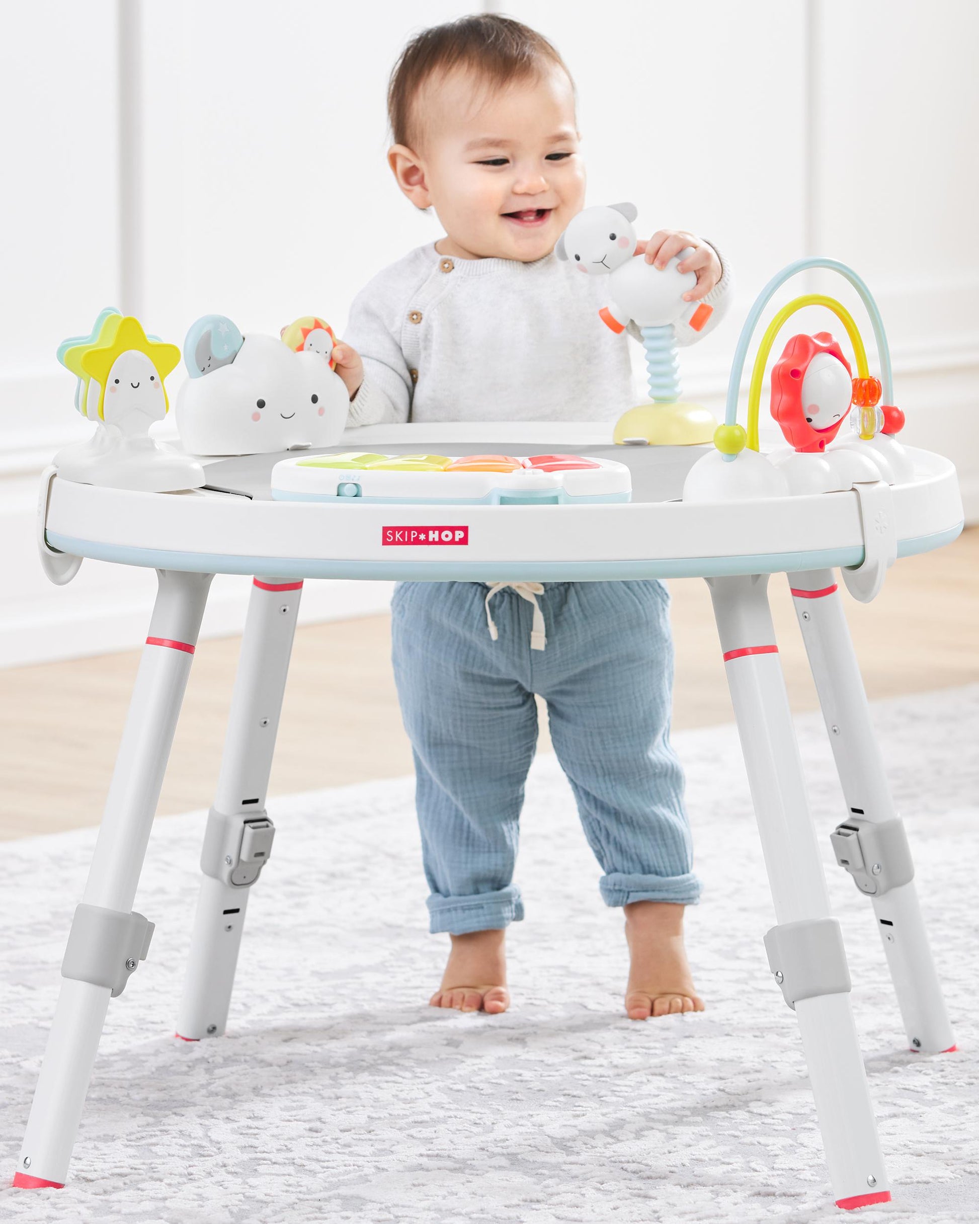 - Three stages of use: Sit, swivel, bounce & play; Cruise & interact; Play table