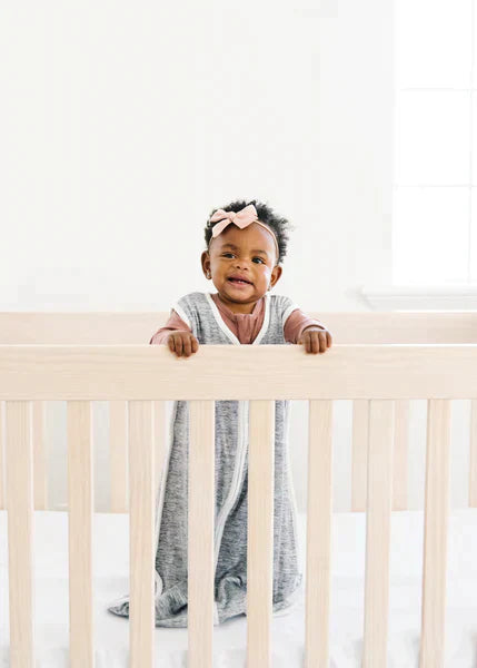 The safest alternative to loose blankets, our must-have Sleep Bag was made to help baby sleep through the night. Boasting three layers of buttery knit fabric for superior softness and stretch, it features a comfy, tag-free neck and a convenient top-to-bottom zipper for easy on and off. Available in your favorite Copper Pearl prints, it has a 1.25 TOG rating and a sleeveless design to offer the perfect amount of warmth for year-round use.