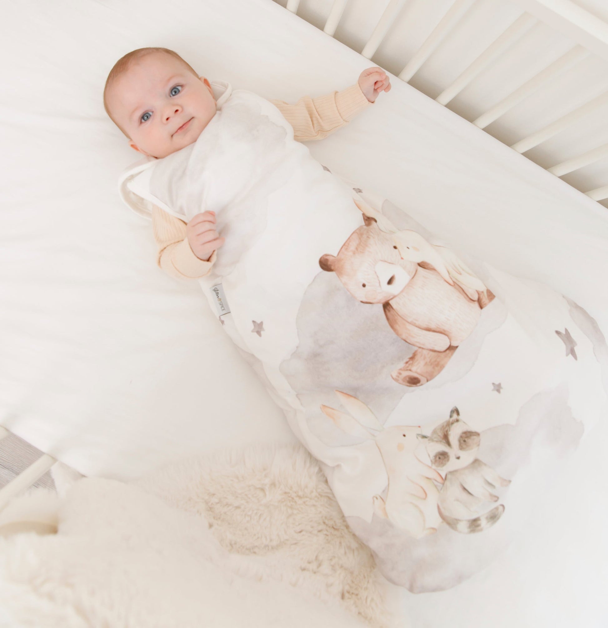 Glitter & Spice's ultra-soft 100% jersey cotton Baby Sleep Bags are designed with a focus on functionally, safety, and style. With no blankets to kick off, baby will stay safe and at a comfy temperature throughout the night.