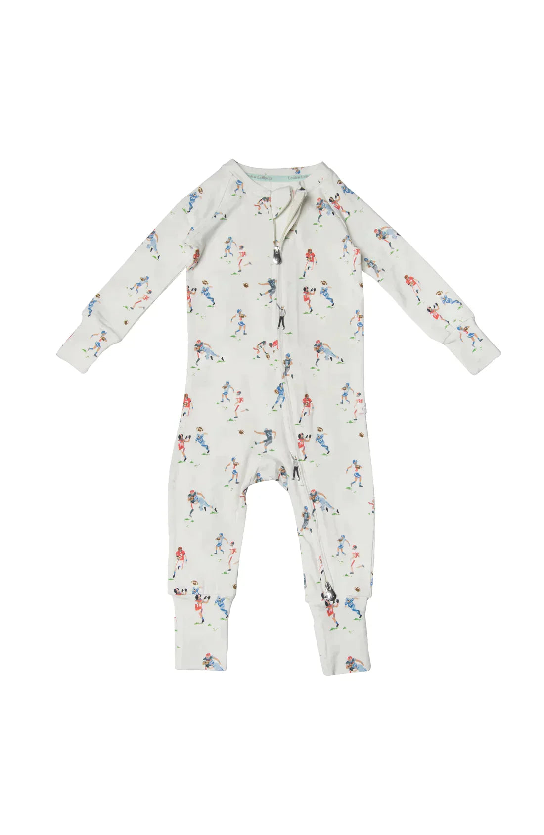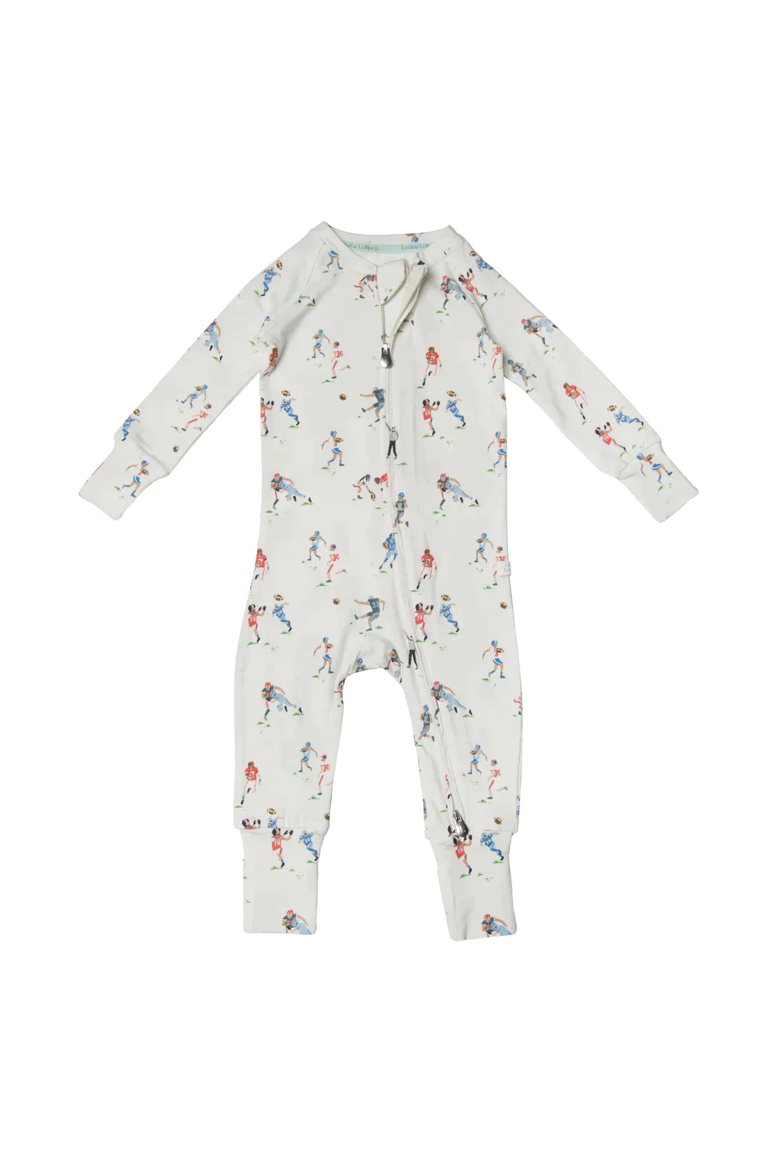 It features a full two-way branded YKK zipper to make diaper change easy, flat shoulder and side seams, and a printed inner care label to reduce irritations for babies with sensitive skin.