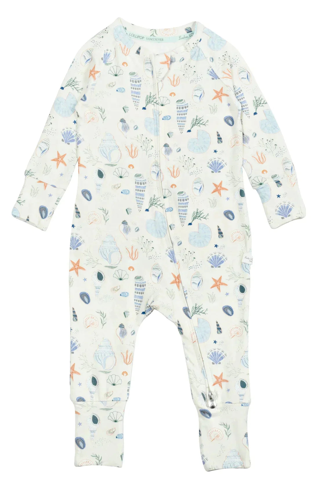 It features a full two-way zipper to make diaper change easy, flat seams on the shoulder and sides of the body, and a printed inner care label to reduce irritations for babies' delicate skin.