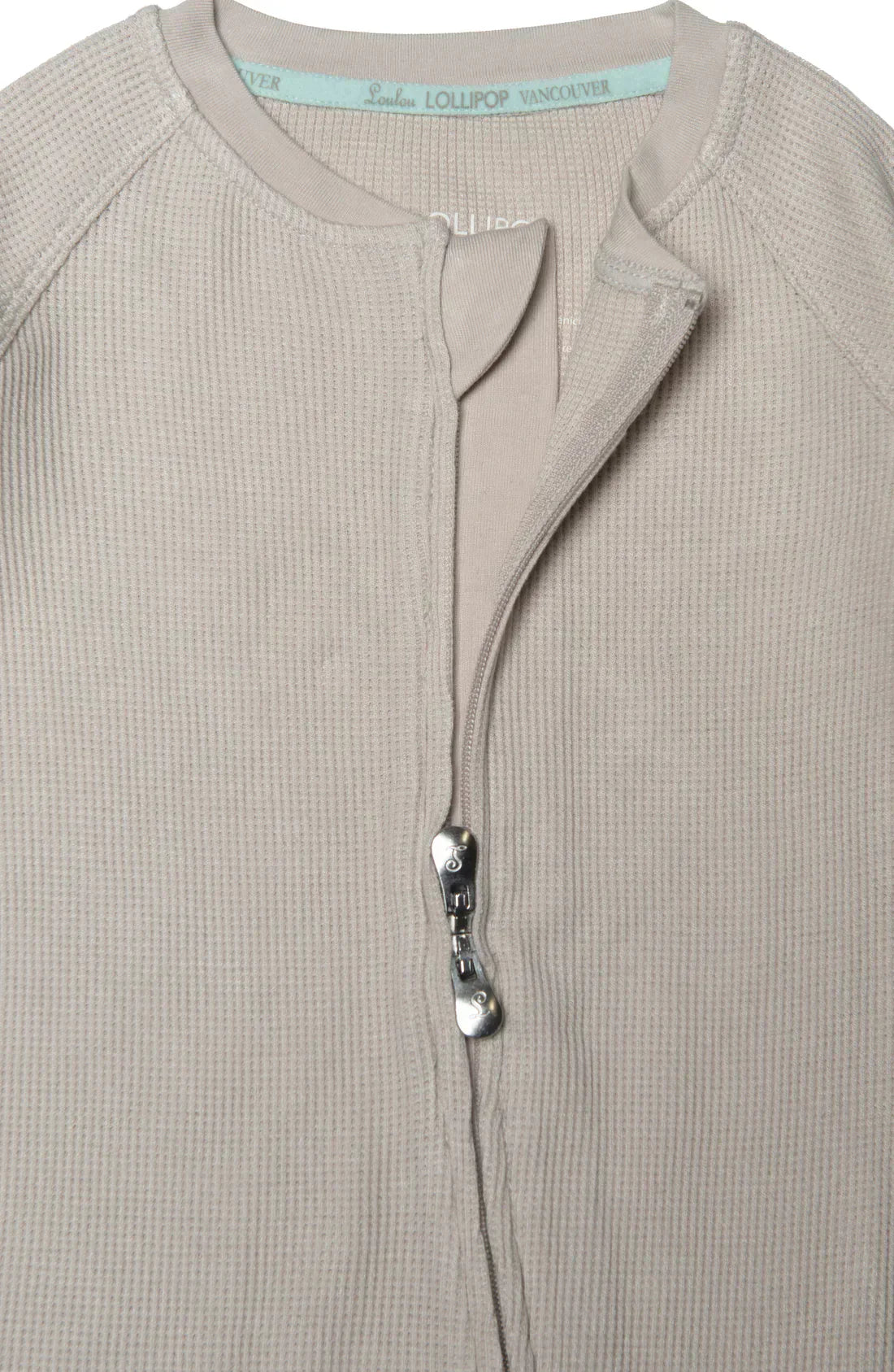 It features a full two-way zipper to make diaper change easy, flat seams on the shoulder and sides of the body, and a printed inner care label to reduce irritations for babies' delicate skin.