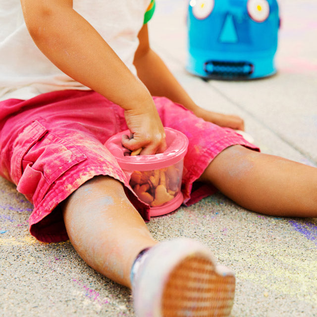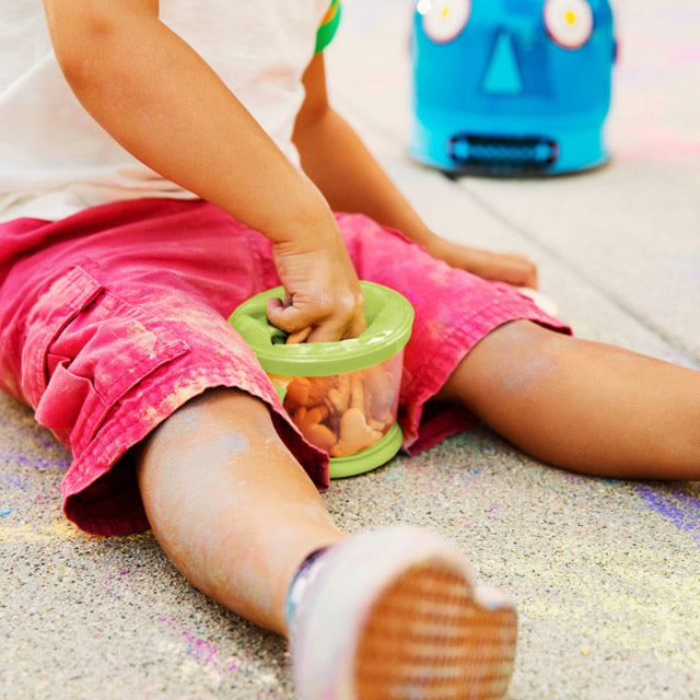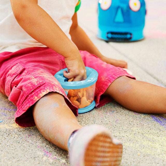 Sometimes it seems all you have to do is follow a trail of crumbs to find your little one. Munchkin’s best-selling Snack Catcher® to the rescue! This portable snack bowl allows independent toddlers to self-feed with a bit more dexterity and a lot less mess. Kids love accessing snacks all by themselves through the soft, flexible flaps, and moms love that those same flaps help prevent food spills all over the house and car. Each spill-proof Snack Catcher® cup has two handles designed for even the littlest hands to grasp easily, and a no-slip rubber bottom to keep it in place on the dinner table, in the high chair, or during lunchtime at school. Snack Catcher® food containers are a must-have for toddlers on the move. And because snacks come out only when they want them to, snack time no longer means food everywhere except your child’s mouth. Win-win for all!
