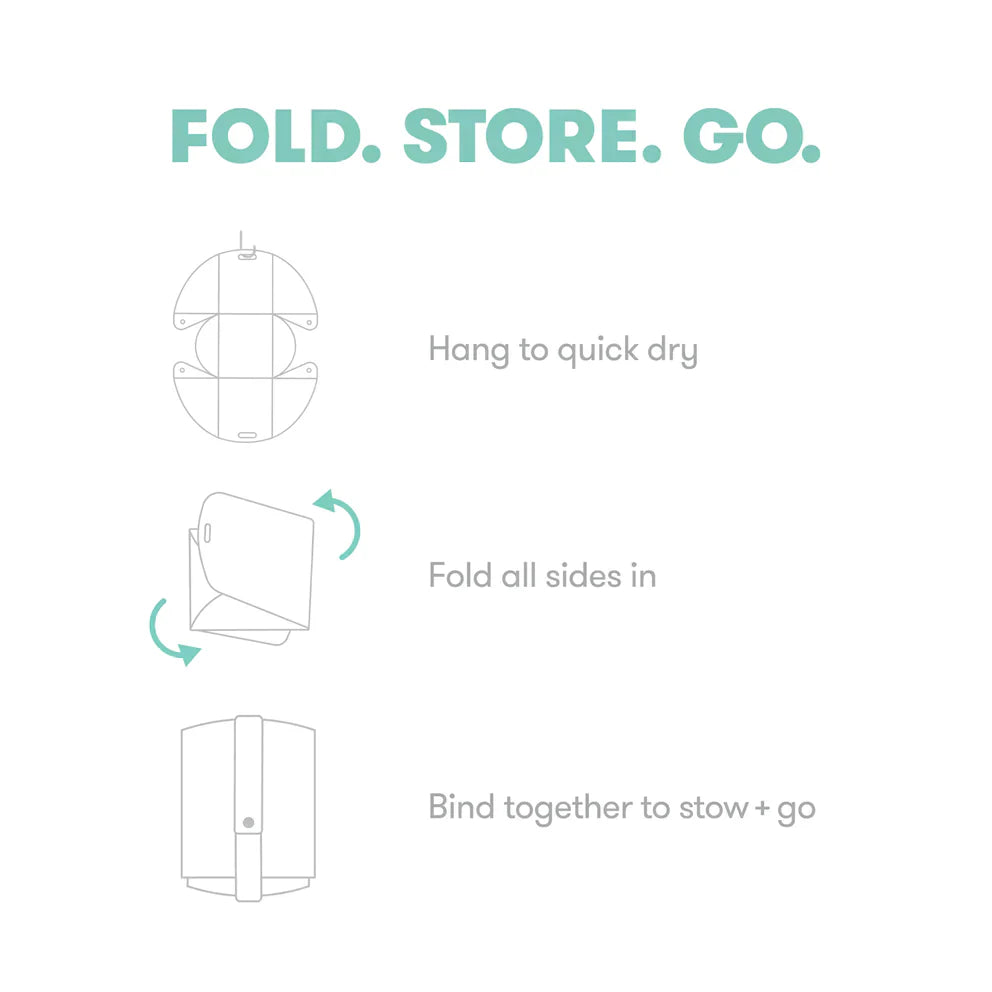 Sides snap together to support a newborn, dry out quickly, and fold up for easy storage and travel.