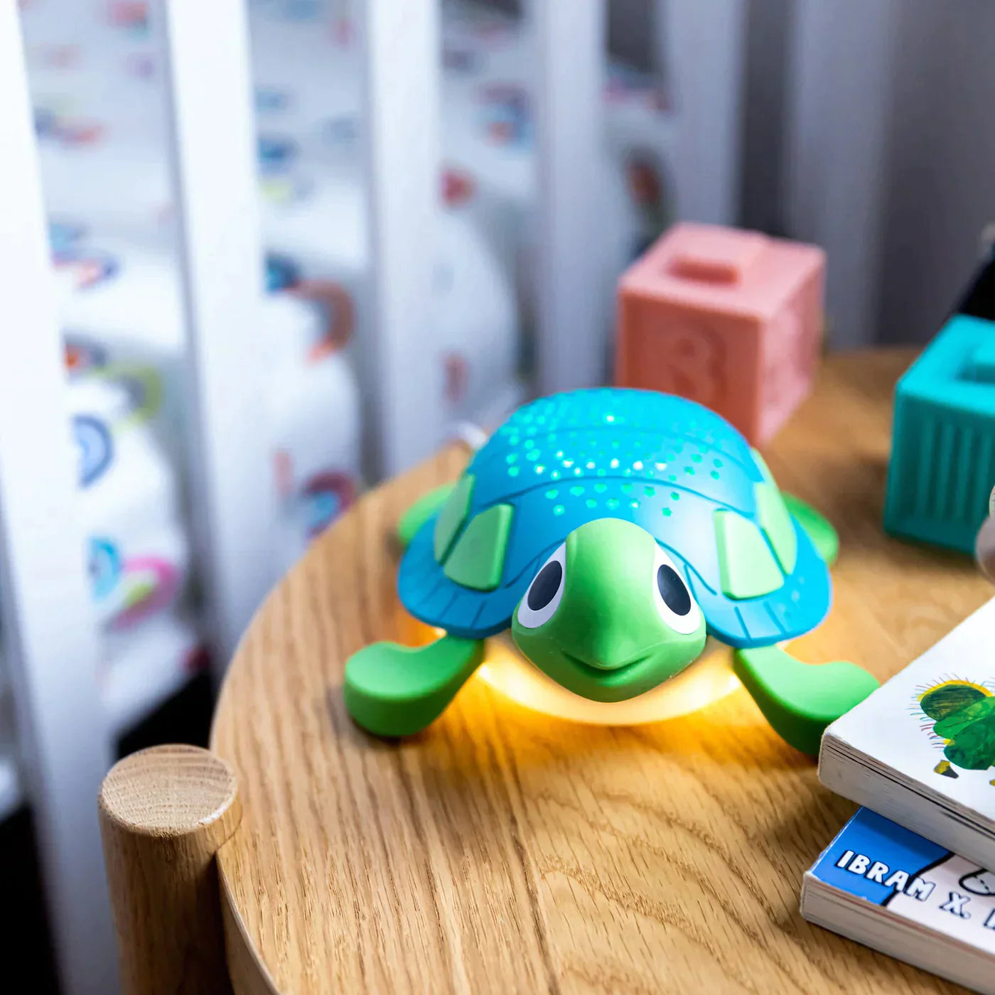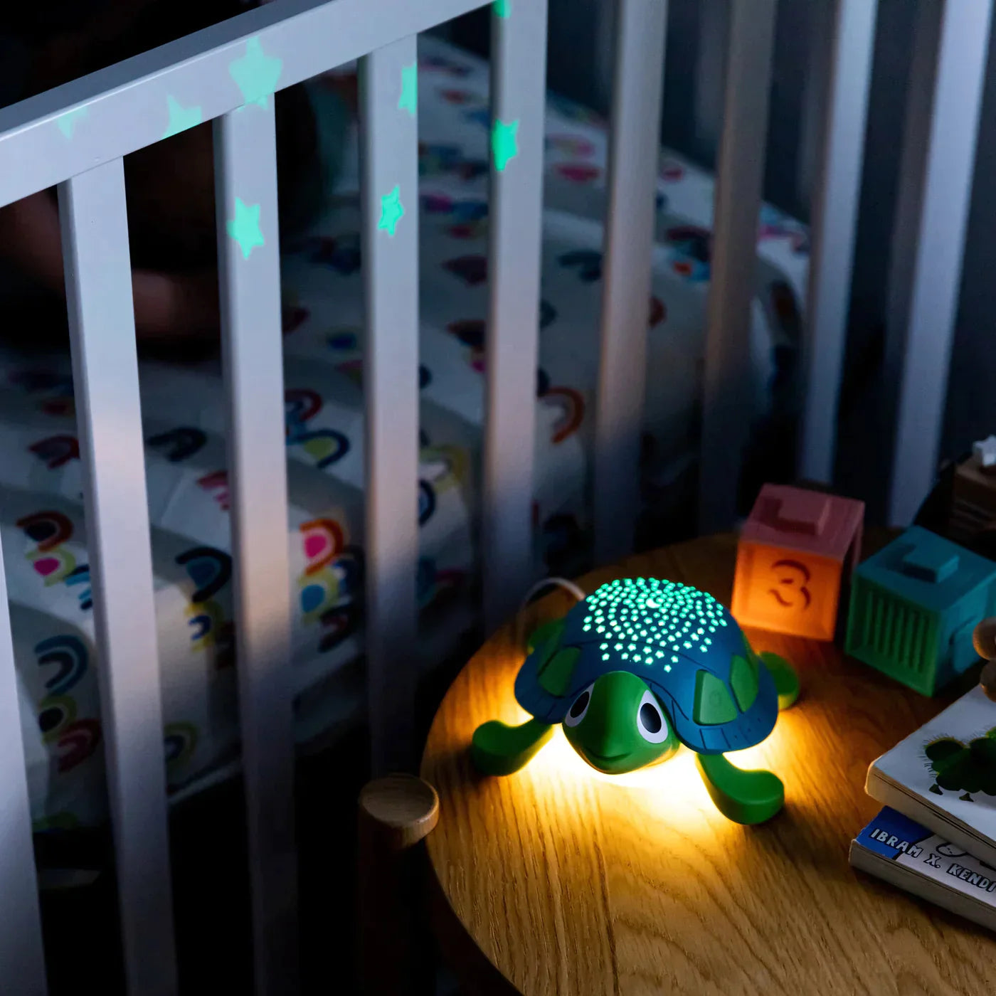 - Project a constellation pattern with the turtle projector night light with three colors and customizable projection. Create a calming ambiance with a spectrum of colours.