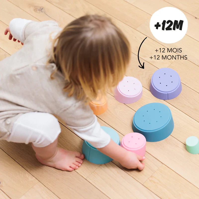 with stak, children begin to structure their ideas to achieve a final goal by stacking all pieces together. the senses of observation and precision will be required to reconstruct the tower by fitting the pieces correctly, but also by following the line that will serve as a guide for each step. For the older ones, Stak can also be played freely.