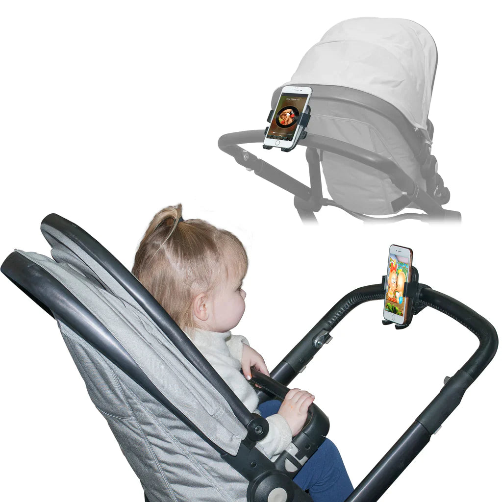 Jolly Jumper® Stroll 'n Phone is designed to help you stay connected while on the go! Simply secure your smart phone to a handle bar on your stroller so that you never miss an important text or call. Also can be used on front stroller bar for baby's enjoyment. (It can even be used on a bicycle handlebar).