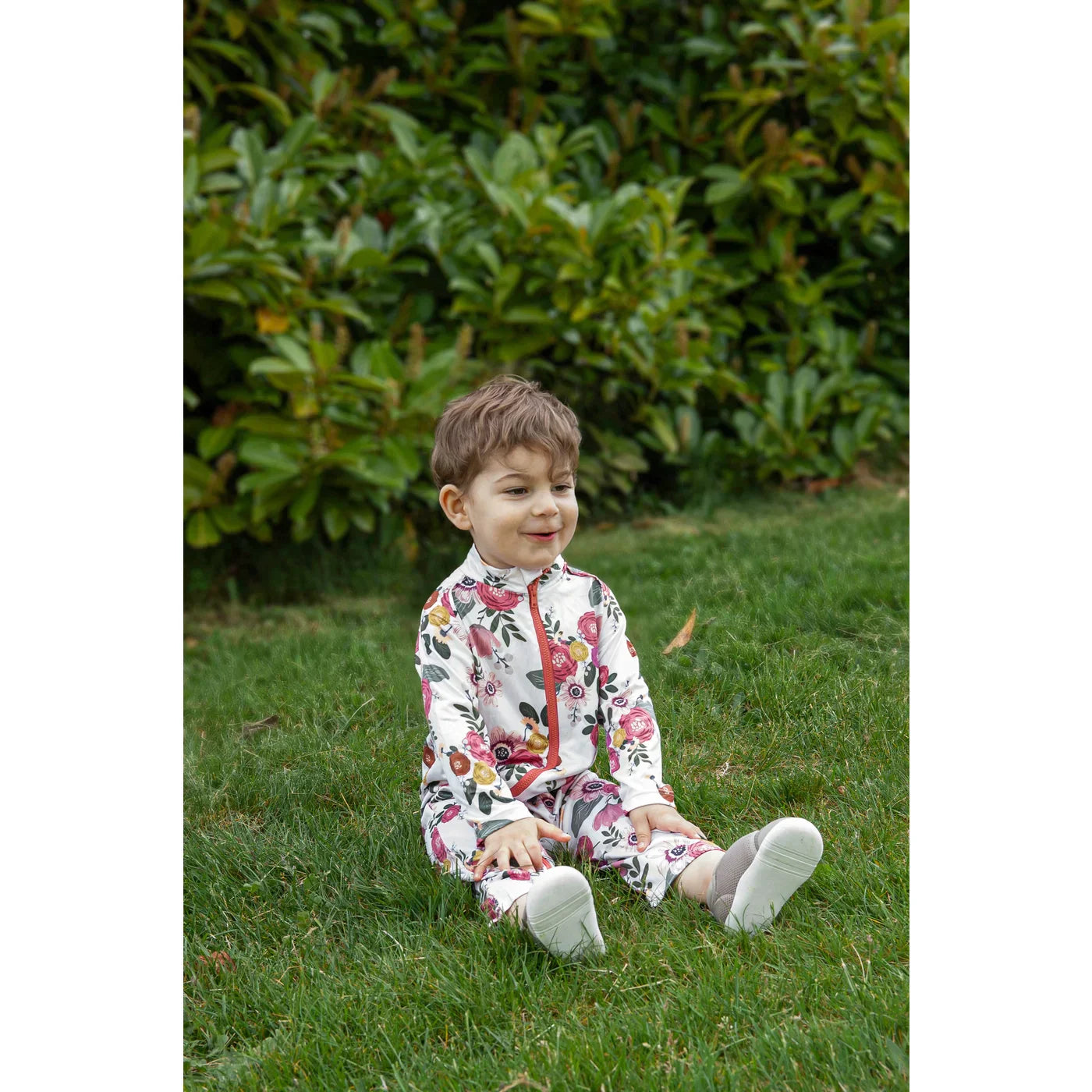 No need to fumble with buttons!Good for swim and play: The lightweight, quick-drying fabric seamlessly goes from playing in the park to swimming in the pool, without needing extra outfits.Made to move: With soft and stretchy fabric, their sunsuit won’t restrict your child’s movements so they play all day long without overheating (thanks breathable sides!)Machine washable: Easy upkeep so you have one less thing to worry about this summer.