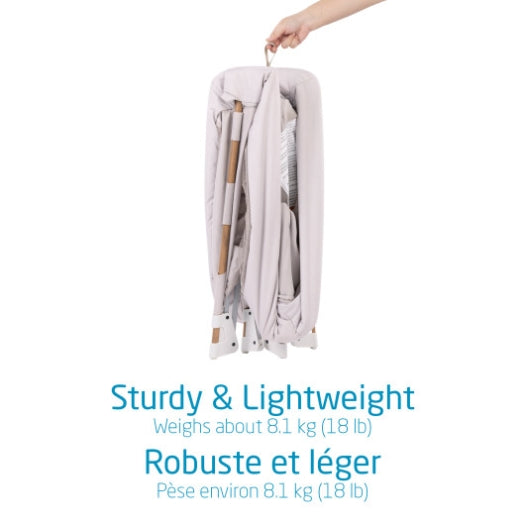 Everything about Swift is designed for speed and ease of use. Its smooth one-step fold is so quick and easy, you can even do it one-handed. One swift action and you can simply get on with your busy day. Swift grows with your baby from newborn to toddler. So instead of buying three separate portable products (a bassinet, travel nap space (supervised), and play yard), the Swift is all three, stylishly rolled into one.