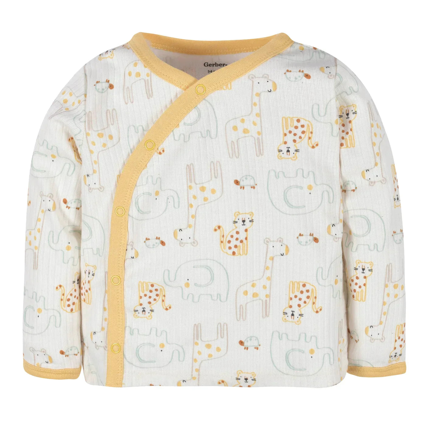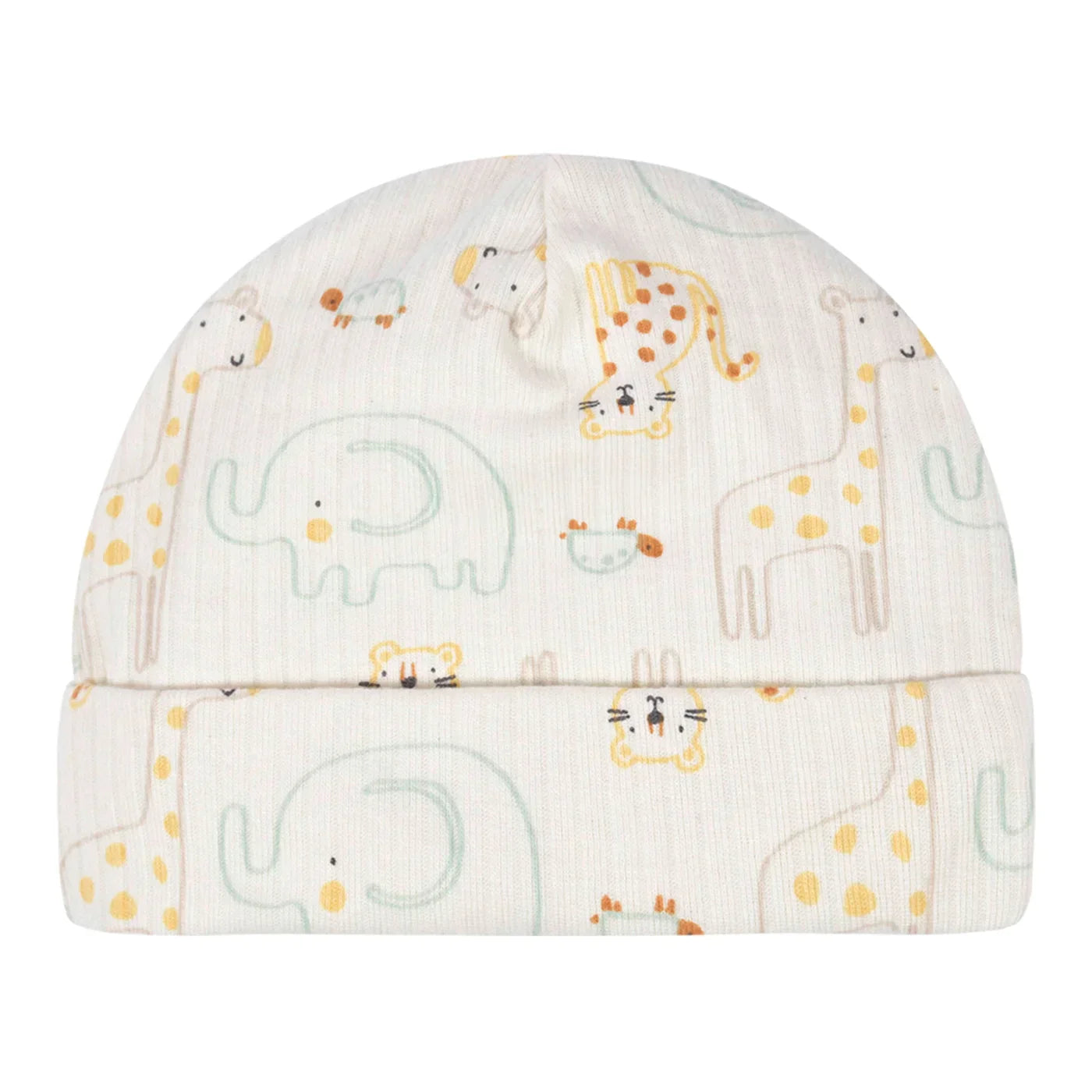 Our Take Me Home sets are the perfect newborn outfits. Each one is designed for gentle comfort and easy on and off. We use STANDARD 100 by OEKO-TEX® certification on products tested in an independent laboratory against a list of more than 400 harmful substances, including PFAS. This pack includes one neutral baby outfit featuring one side snap shirt, one footed pant, and one cap in beige safari print.