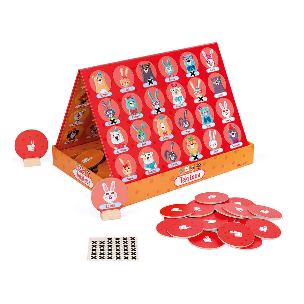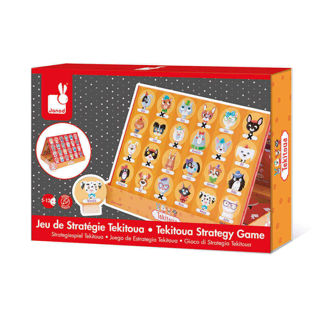 Tekitoua is a strategy game for 2 players. What is your opponent's animal? You would ask questions to discover and eliminate one animal after another by crossing them off on the tray. The first player to identify the animal is winner. Come with 48 reusable stickers and 48 cards.