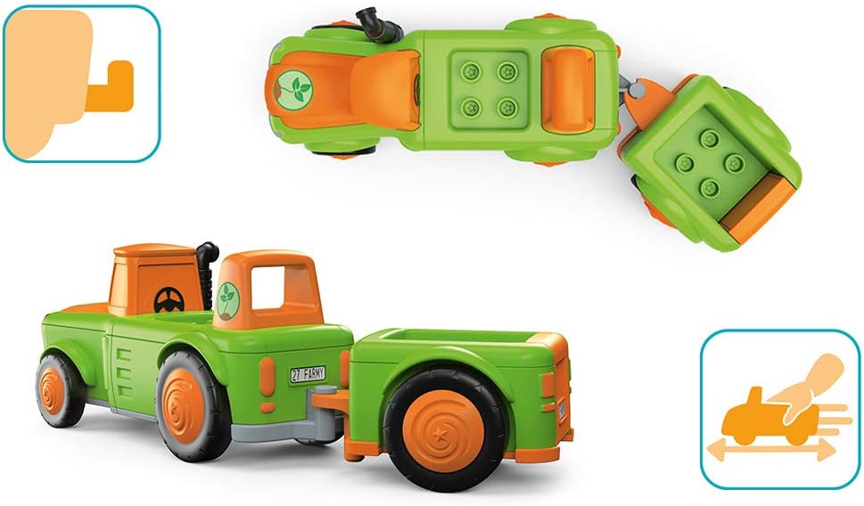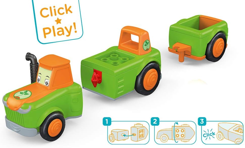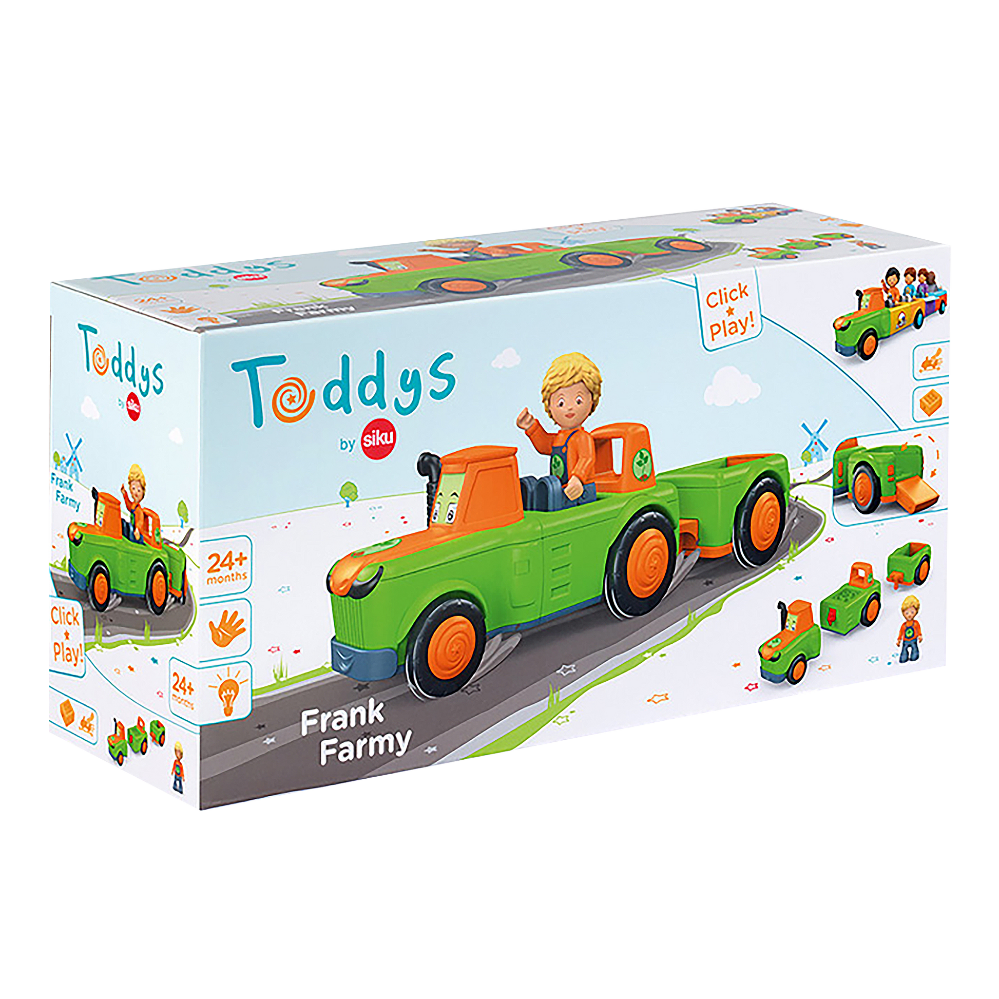 The Frank play figure has movable parts: head can be turned, arms can be raised, and legs can be bent. The Farmy vehicle can be divided into three parts and combined with other Toddys vehicles. Farmy has a seat which is reserved for Mio’s friends. Frank Framy is compatible with components from other manufacturers. siku “Click&Play” system: easy to combine thanks to the twist-and-push system of the vehicle parts