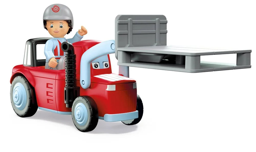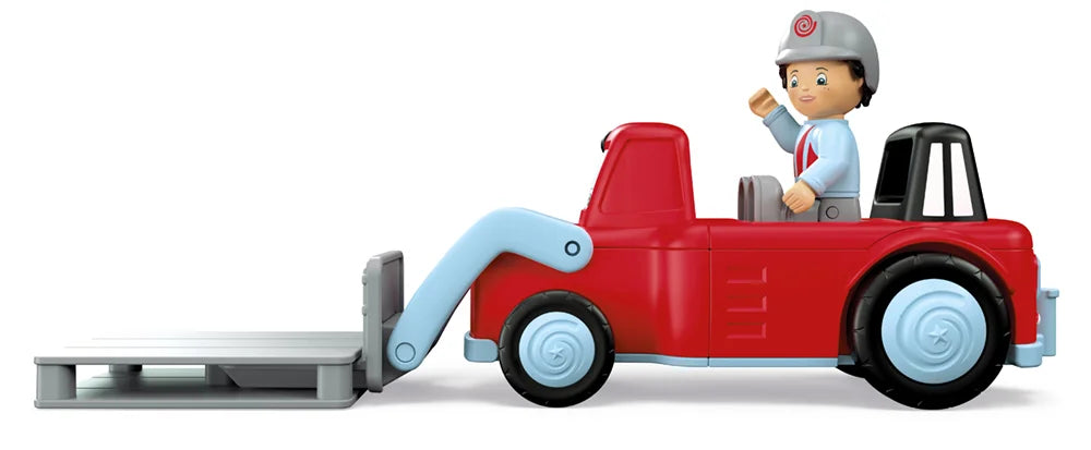 Willy works hard stacking wood, crates, and stones onto pallets. Worky transports then wherever Willy needs them. Willy’s brilliant ideas and Worky’s strong forklift arms mean that the two are a dedicated team.