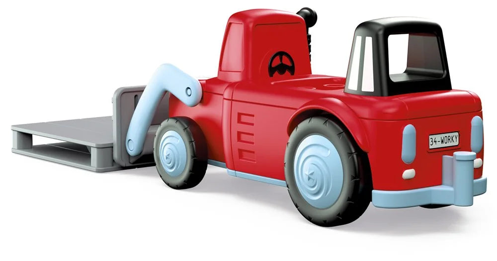 The Worky vehicle can be divided into two parts and combined with other Toddys vehicles. The adjustable lift truck and the pallet also stimulate the play experience. Willy Worky is compatible with components from other manufacturers. siku “Click&Play” system: Easy to combine thanks to the twist-and-push system of the vehicle parts; this encourages motor skills and ensures long-lasting playing fun. Robustly built in siku quality