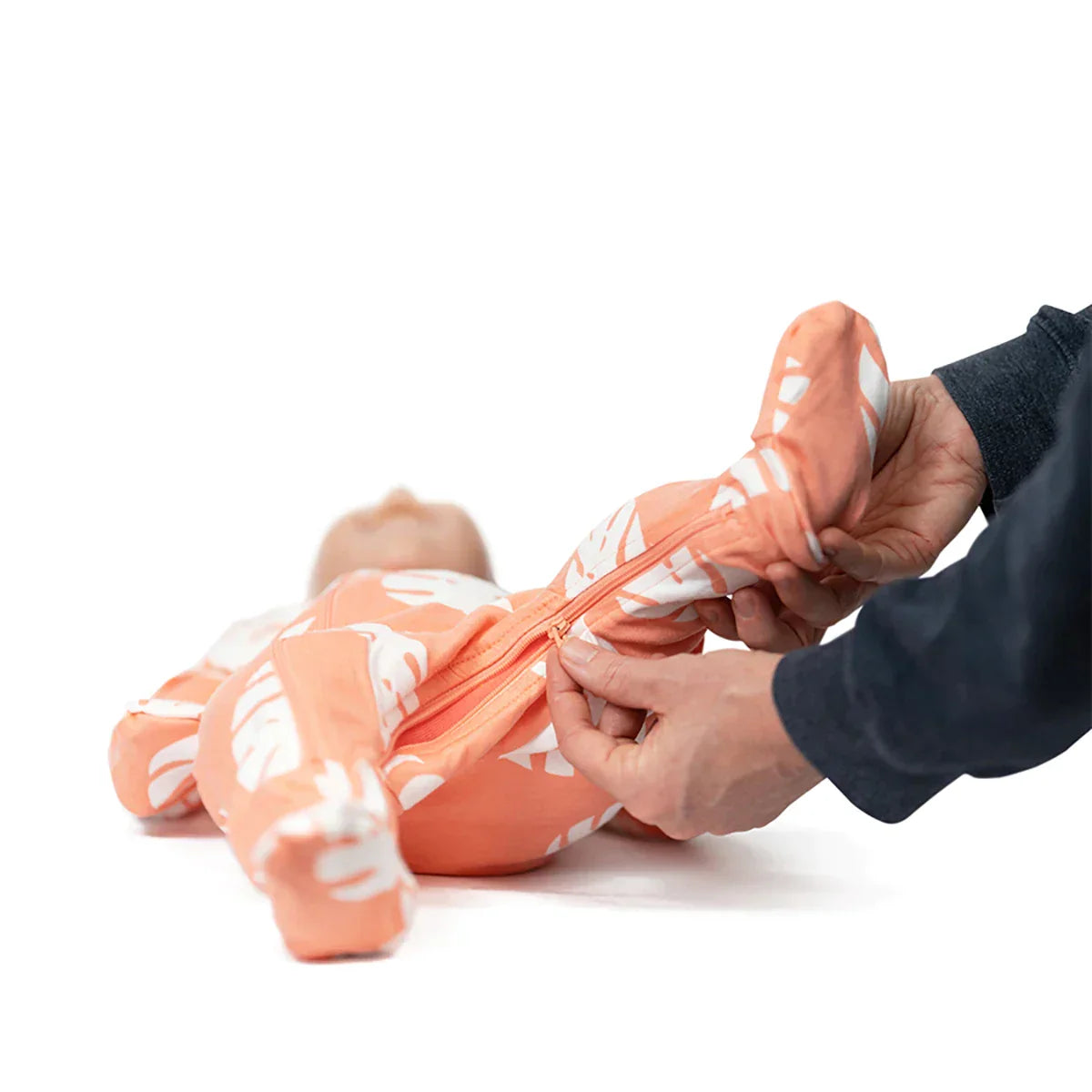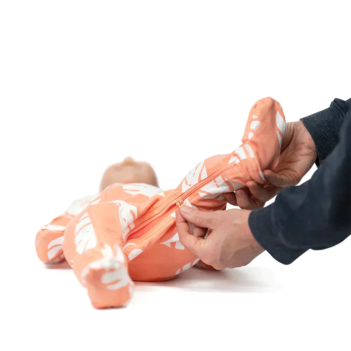 - 2 separate zippers make dressing and diaper changing quick and easy