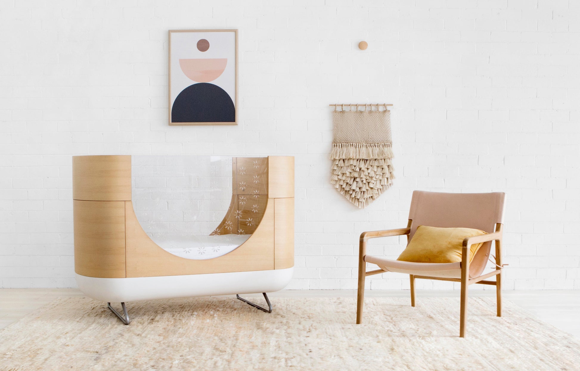 The Pod Crib is a cozy cocoon-shaped crib with smooth, rounded edges for a distinct modern look.
