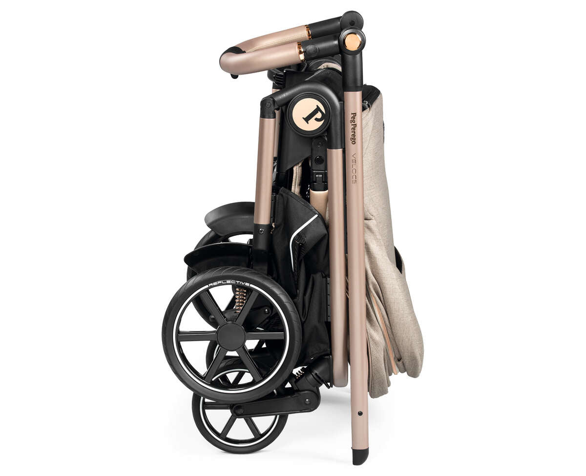 Veloce stroller opens and closes with just one hand using the central control on the handle so that you never have to bend down.