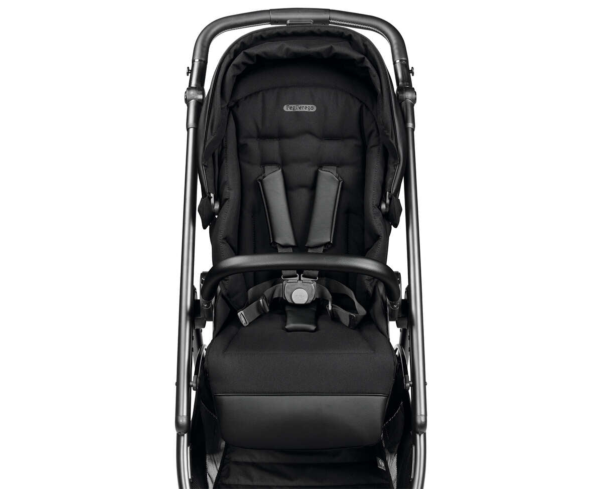 Comfort and functionality are guaranteed by a roomy seat, a 5-point harness, and an eco-leather front bar that opens and closes with ease.